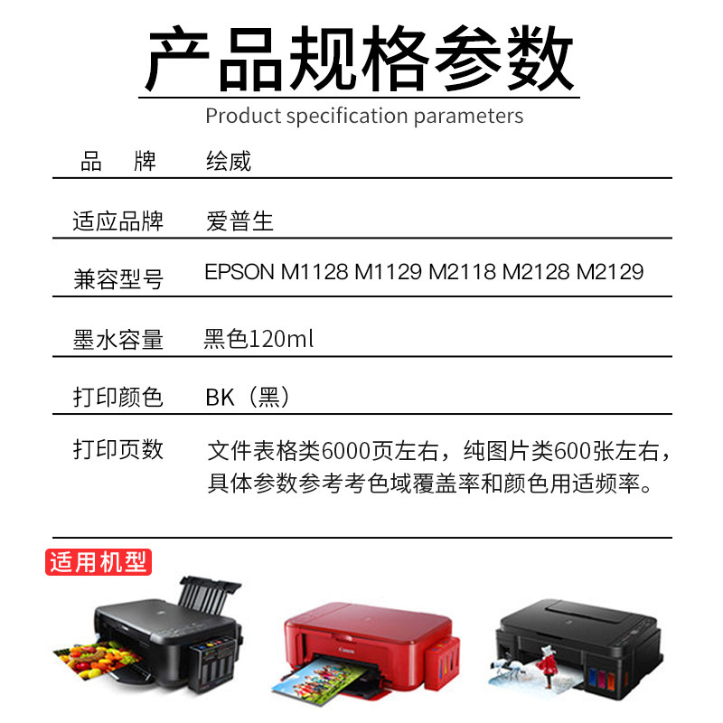 Epson 006 007 Ink M1108 M1128 3170 2140 1140 1120 2148 3148 3178 1178 2178 1129 Printer Ink Black