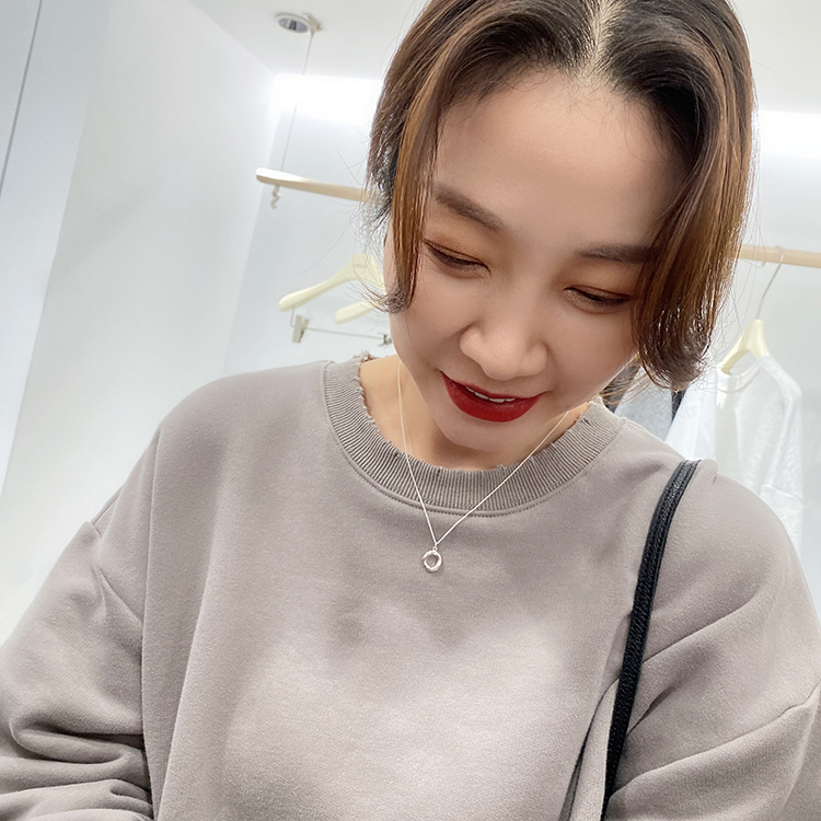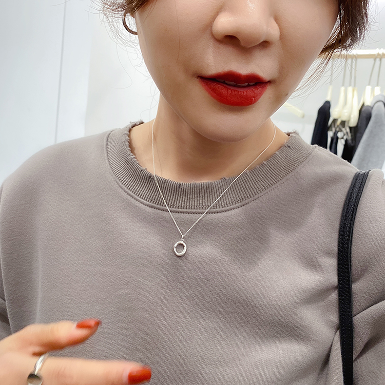 Chen Ji Children's identical oval concave and convex texture lock bones chain ins small crowdsourced minimalist design sensation necklace tide 104