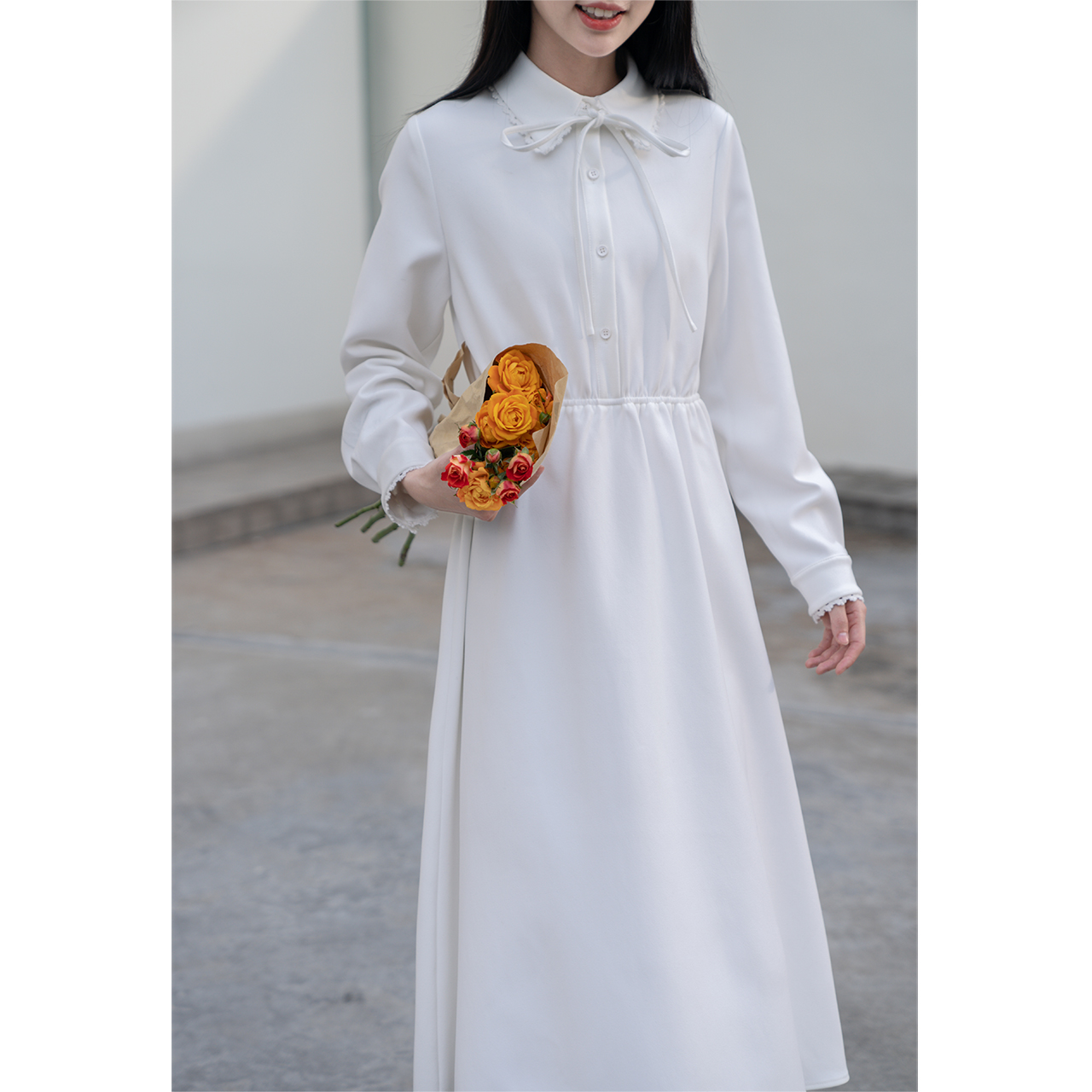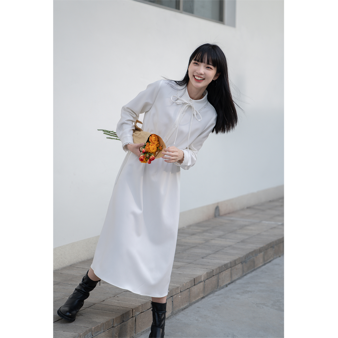 Deer South White Dress Woman Spring 2022 New Close-up Lace Temperament Suit Medium Long Version Dress