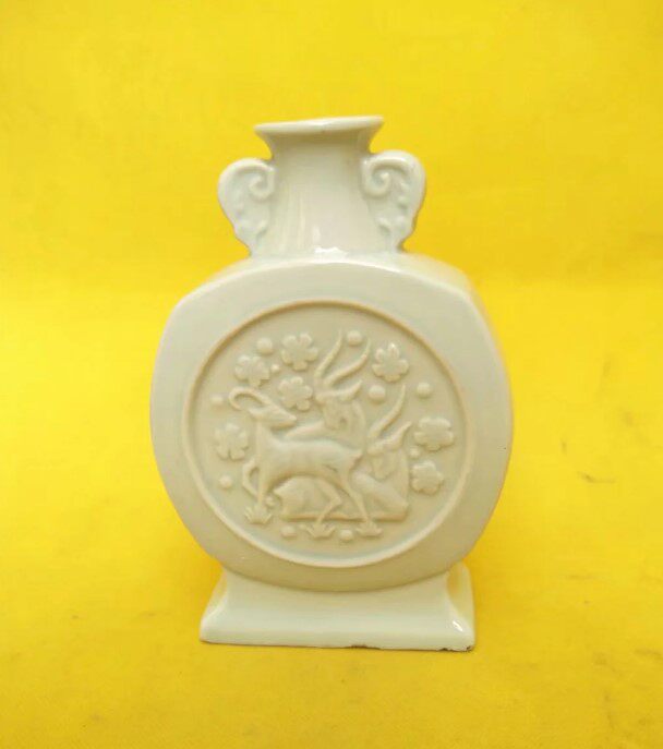 Old wine bottle collection of fine ceramic double ear animal relief green porcelain decoration furnishing