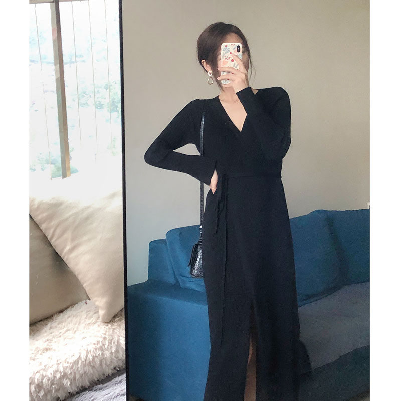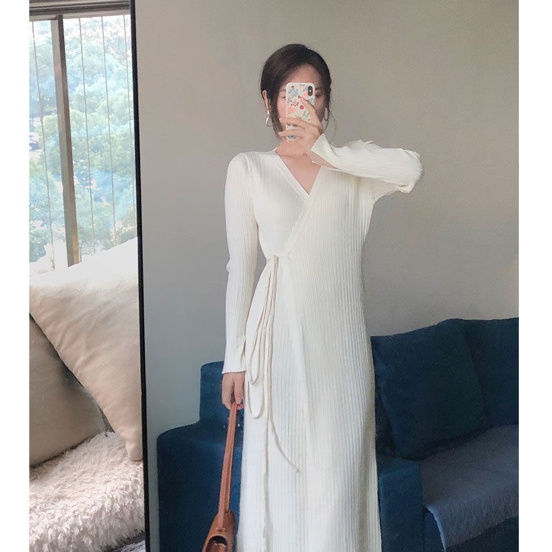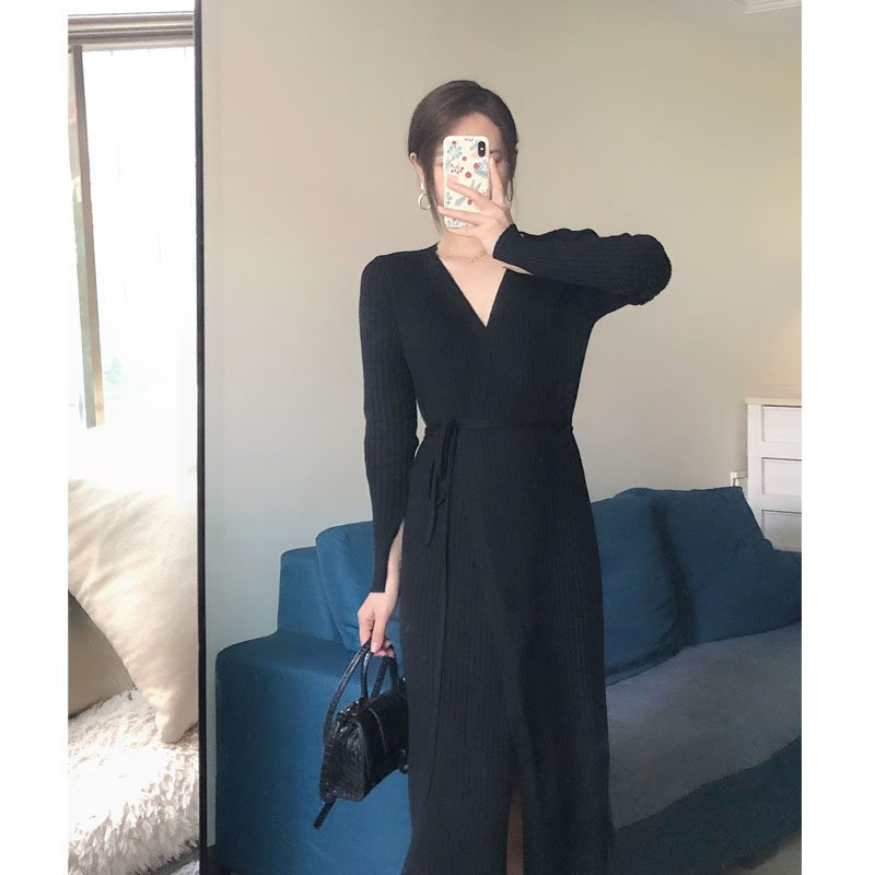 With a coat long version of sweater skirt over the knee French niche waist waist with a knitted dress women's autumn and winter dress