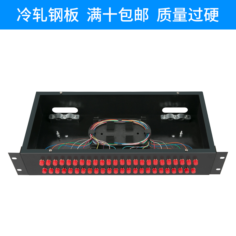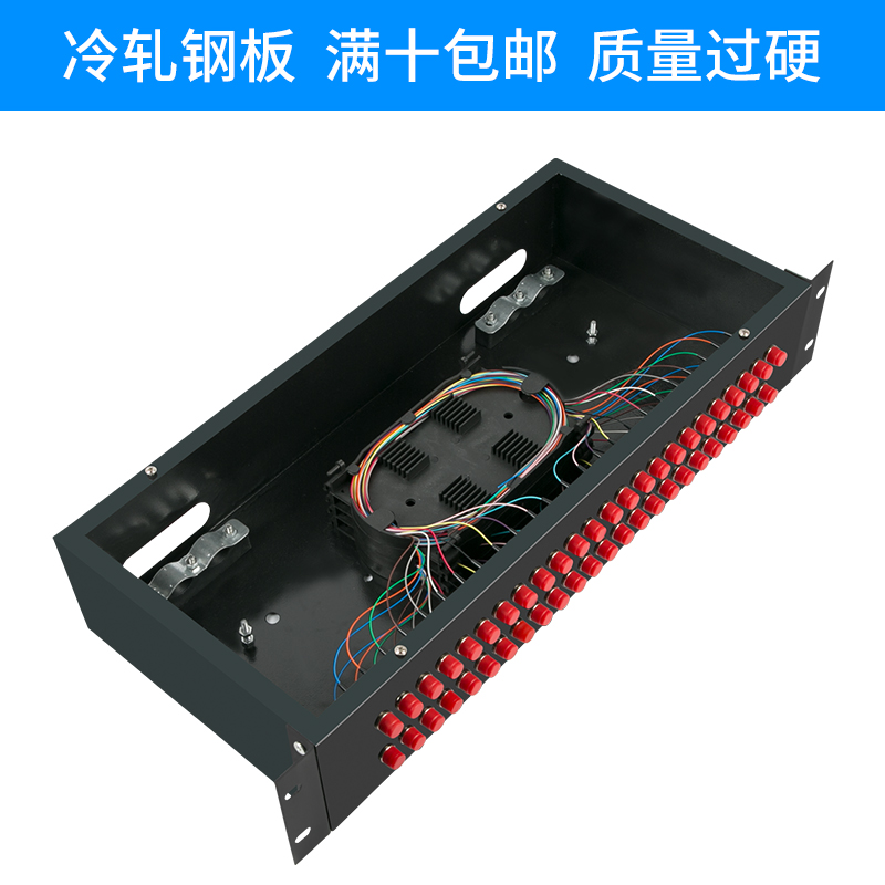 Telecom grade black round mouth rack light end box 48 mouth full fit coupler flange tail fiber box FC-ST48 mouth fiber terminal box 48 core optical cable connection box fusion box module box
