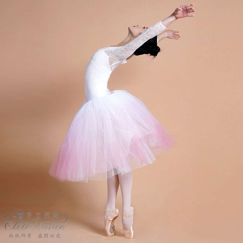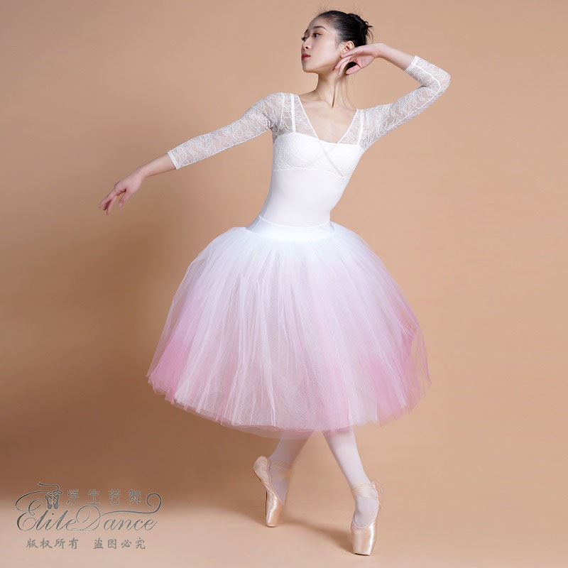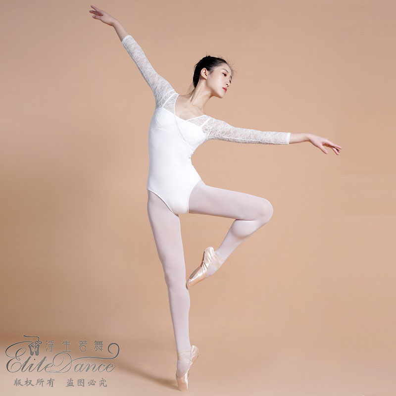 Floating dance lace stitching Ballet dance yoga base training work suit Long sleeve jumpsuit 20FW04