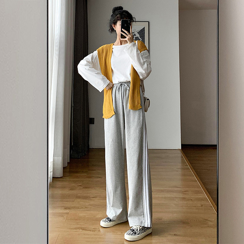 Grey Sports Pants Woman Loose Straight Drum Spring Autumn Season 2021 New High Waist Display Slim 100 Hitch Comfort Casual Wide Pants