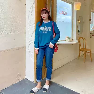 Cai Duobao large size women's clothing autumn and winter 2021 new lace stitching embroidery top fake two sweet age-reducing sweater