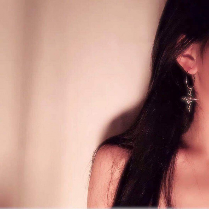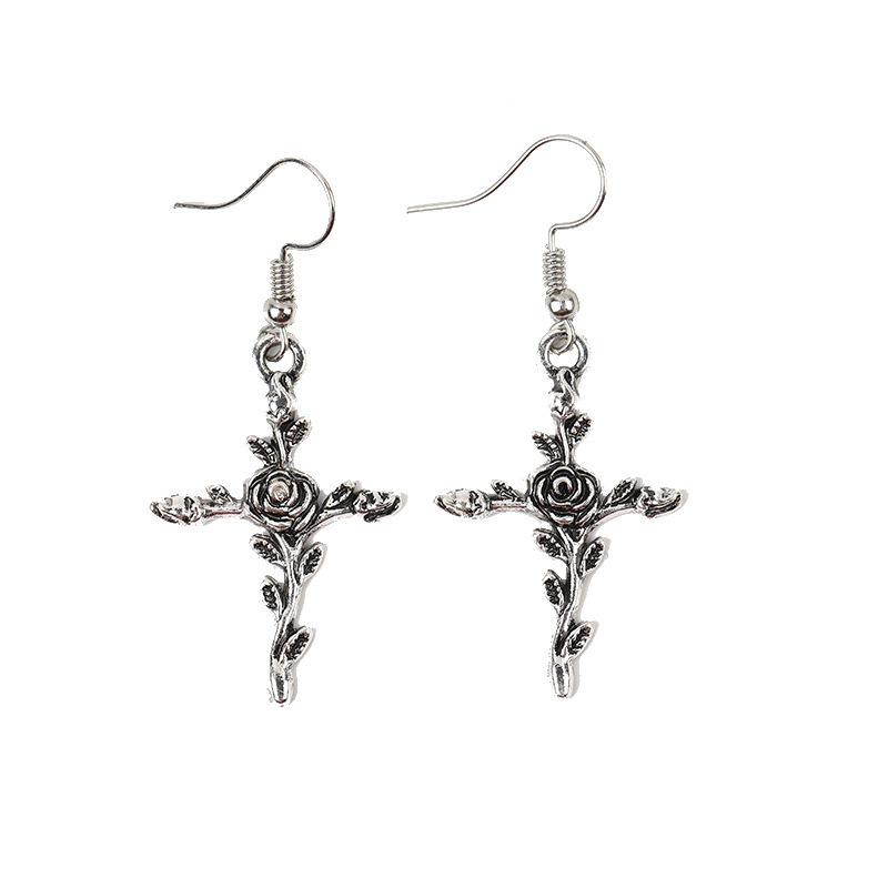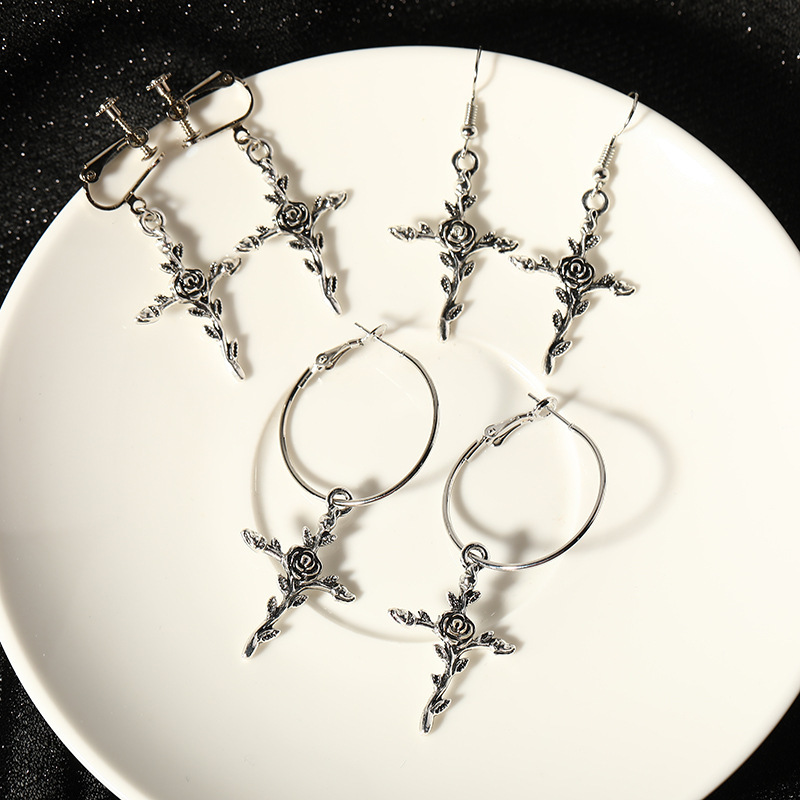European and American new cross earrings female roses retro Exaggerated Earrings Personality 100 Hitch Clip Earrings