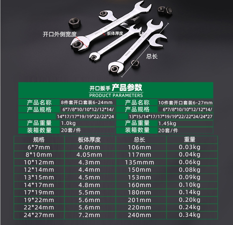 8 pieces of sets opening wrench Two-head opening wrench dull head wrench 10 pieces opening wrench suit-Taobao