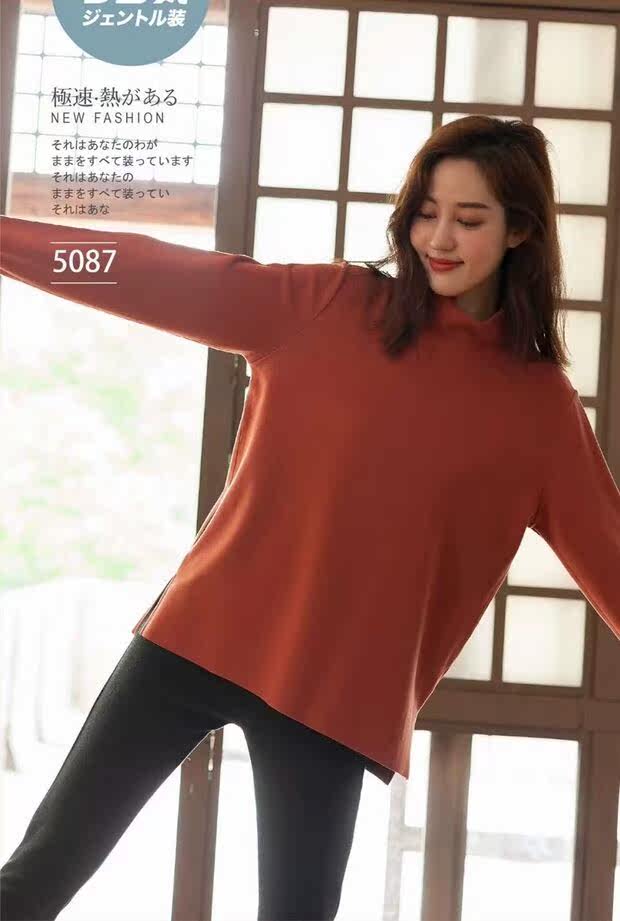 Qiao Anduo autumn and winter women grinding hair speed warm high neck coat large loose casual coat base shirt 5087