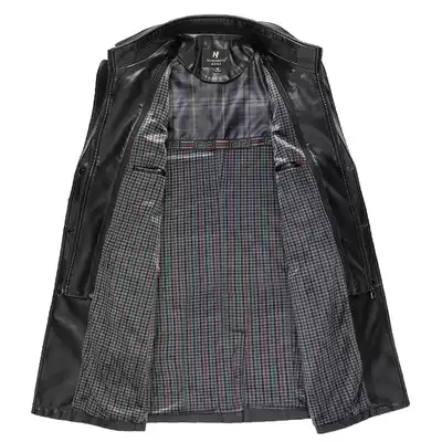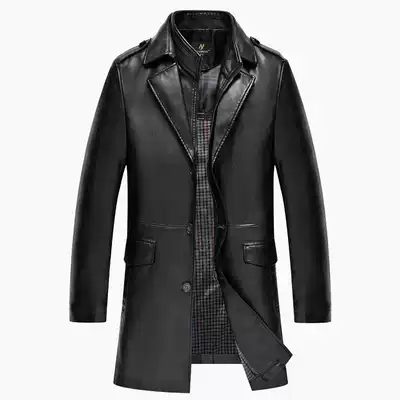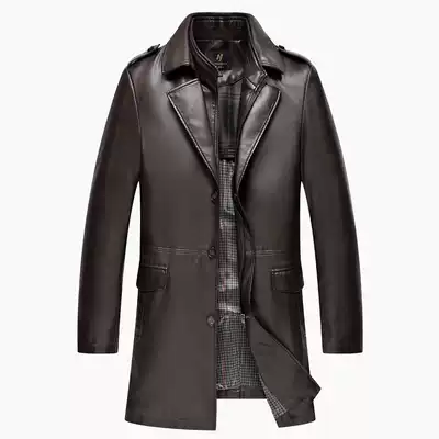 2021 New Haining leather leather jacket men's medium long version slim sheepskin windbreaker casual large size autumn winter coat
