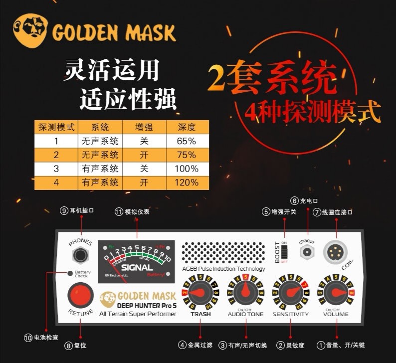 Pulse metal detector Bulgarian gold mask depth hunter PRO5 underground metal detector 3 m