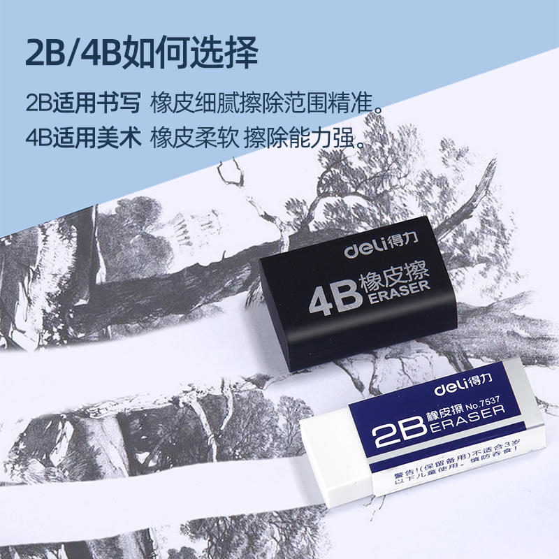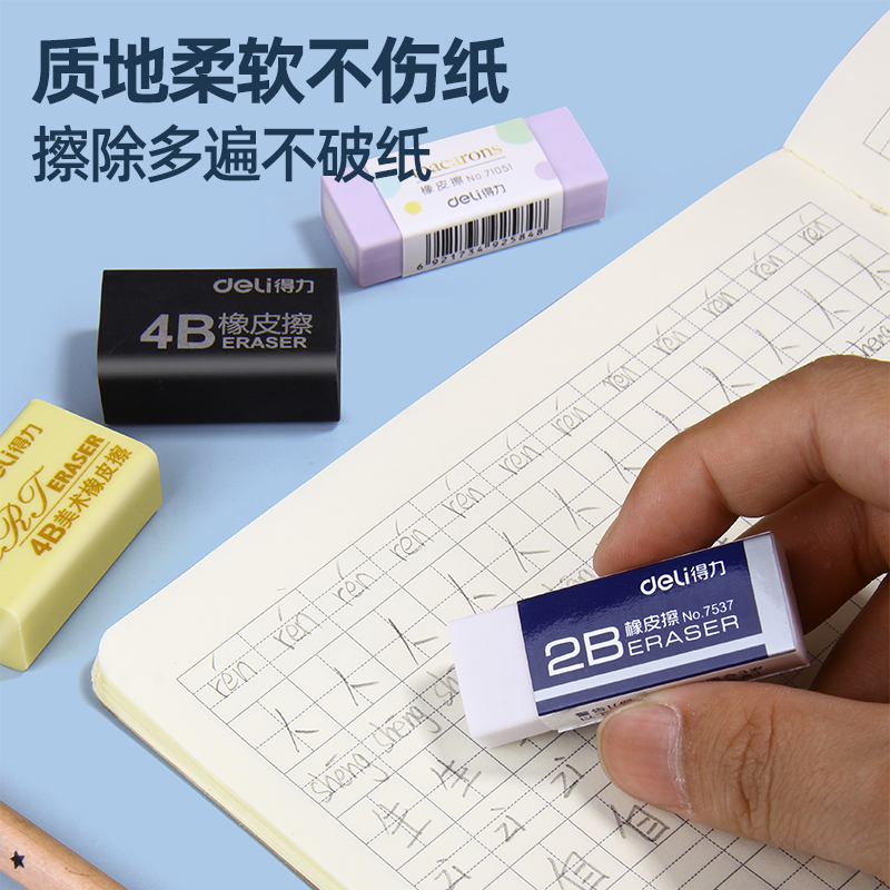 Deli black eraser student exclusive non-leaving children 2 than like leather pencil sketch art eraser clean elementary school student 2b4b eraser stationery supplies hb large no debris