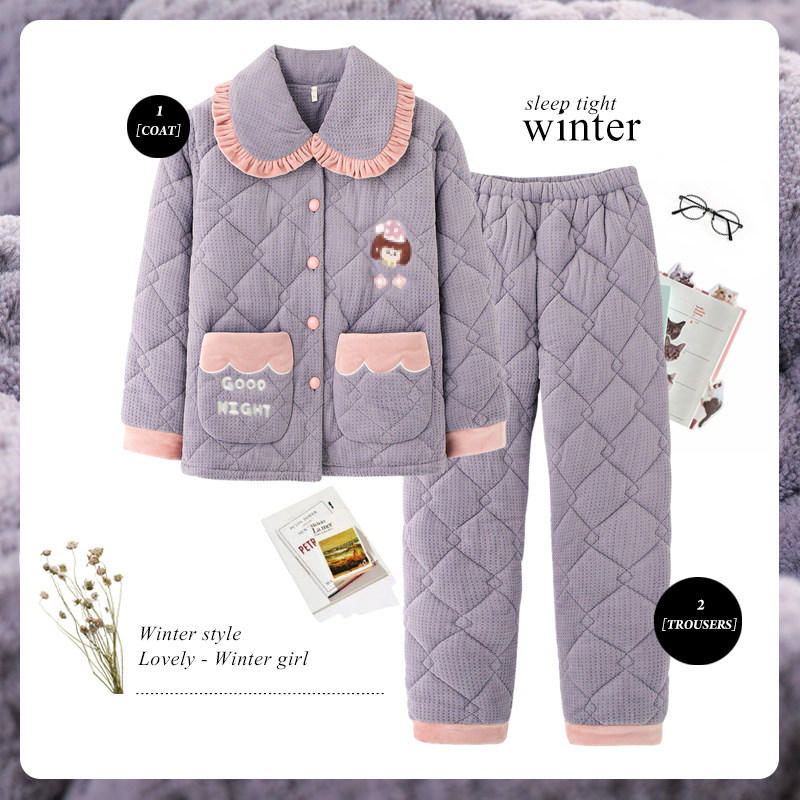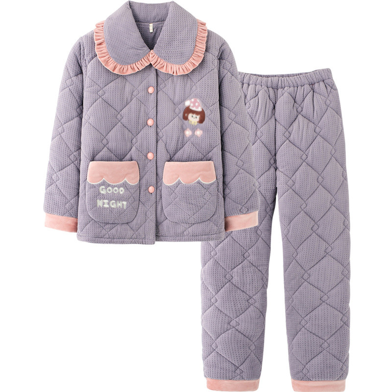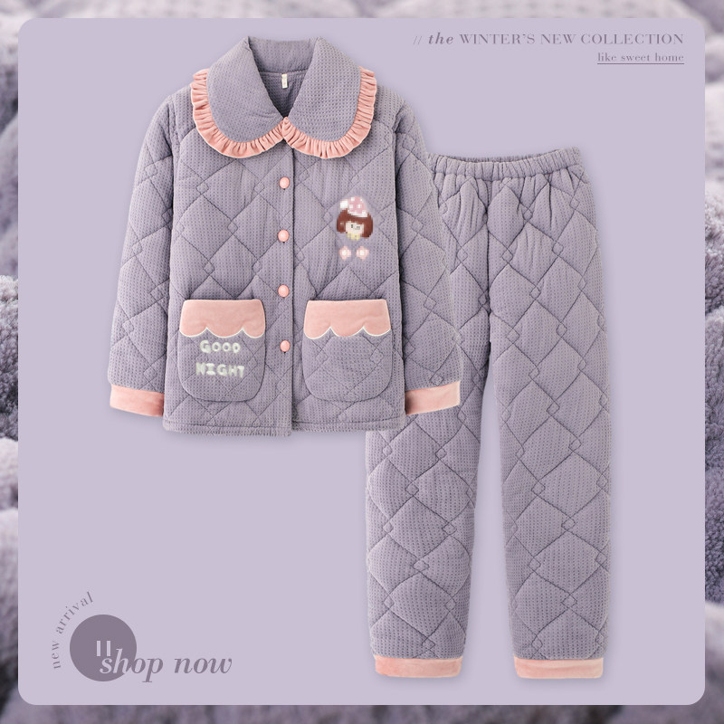 Mrs. Sili winter pajamas women's thickened plus velvet coral fleece three-layer quilted super thick autumn and winter 2021 new