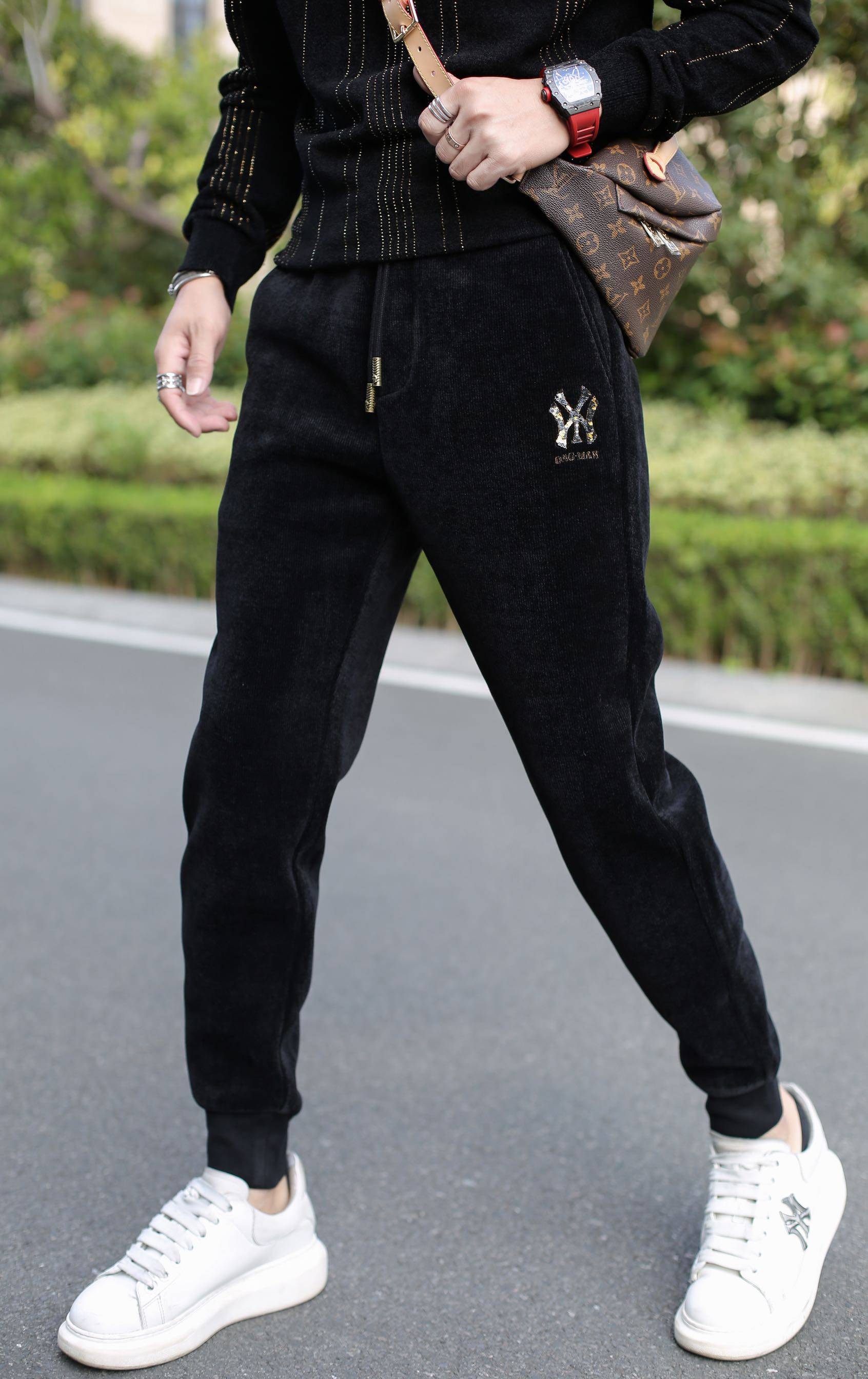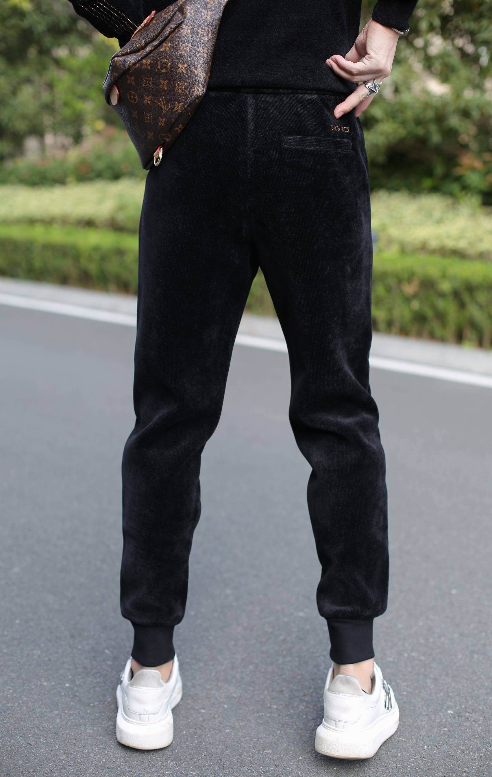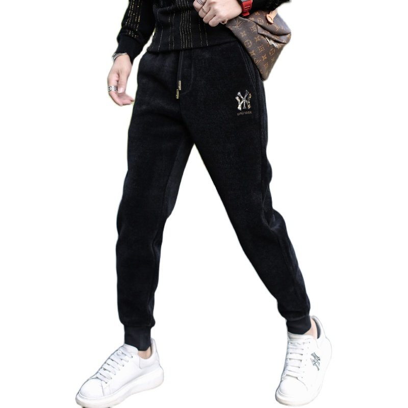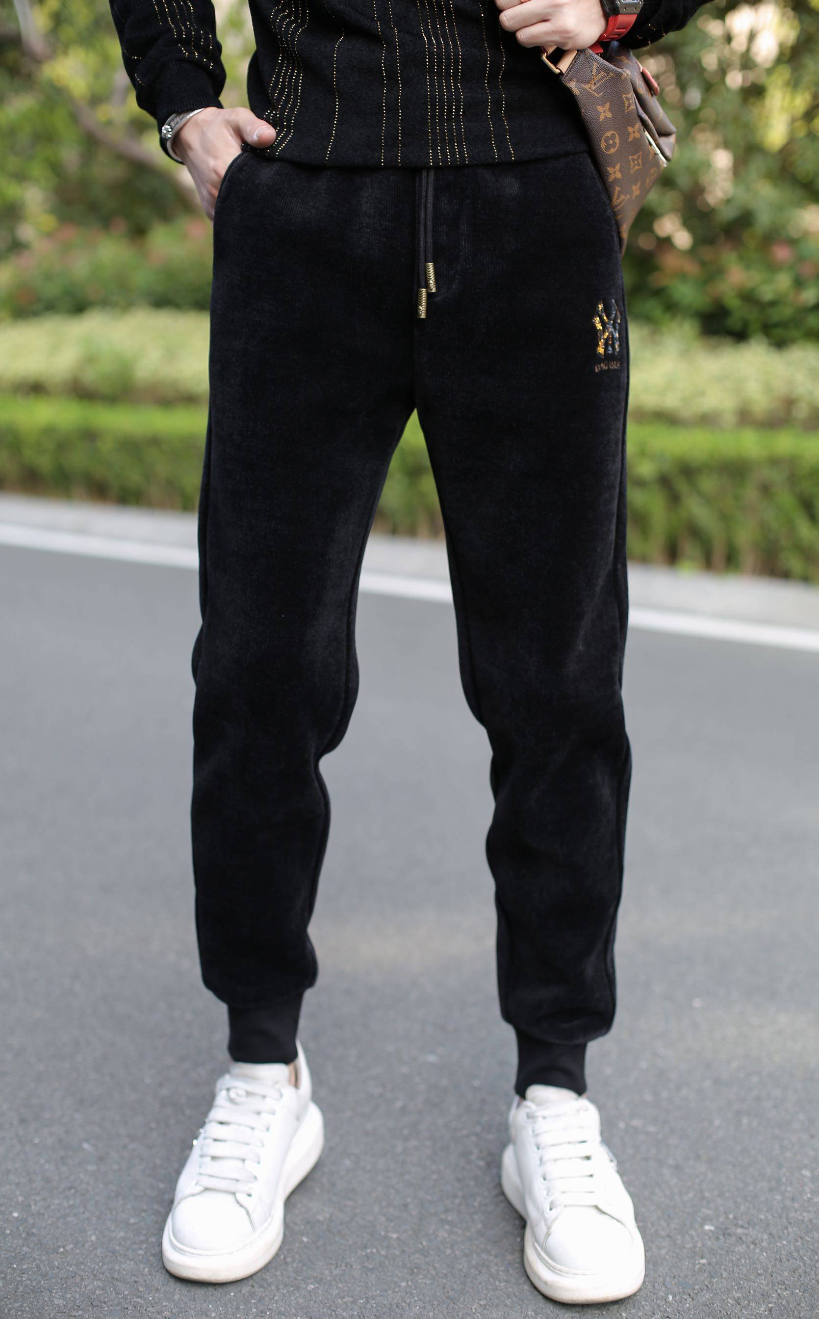 Tide Card Casual Pants Men 2021 Winter new gush fit pants tightness waist trendy Han version bunches Sports thick cotton pants