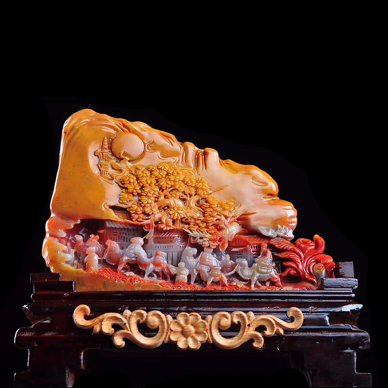 2021 new Shoushan stone ornaments carved stone carvings carved Furong stone carved goldfish ornaments business gifts craft gift ornaments