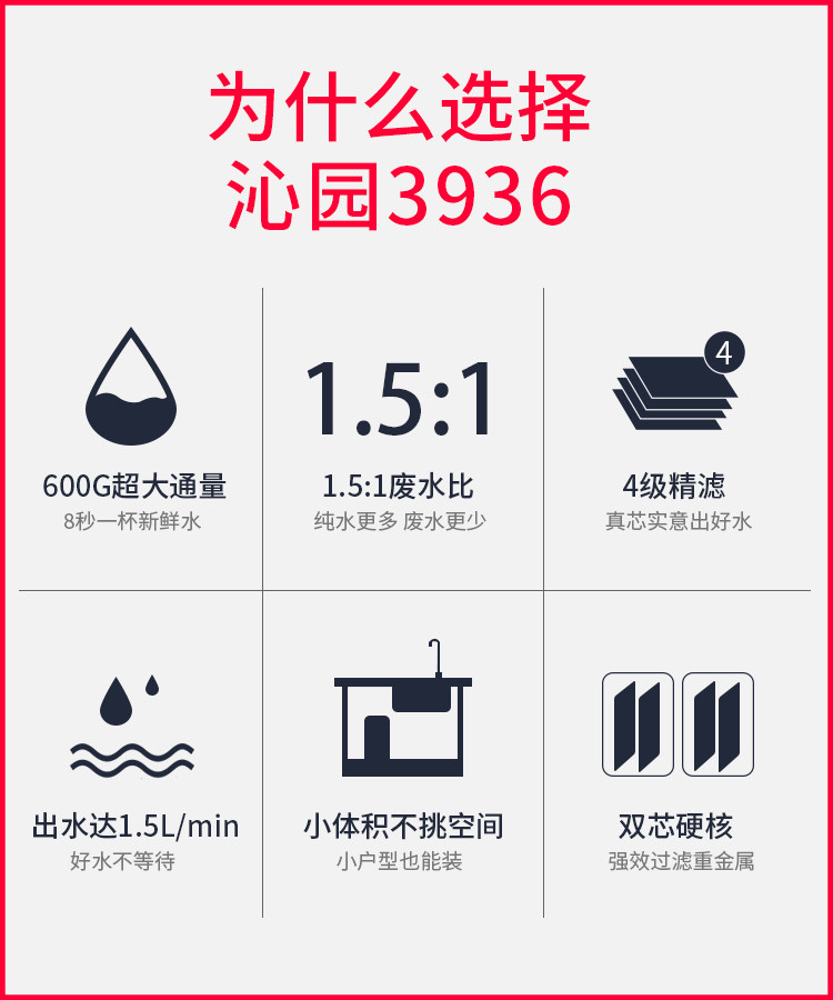 Qinyuan water purifier household direct drink kitchen tap water pass ro reverse osmosis water purifier 5006 small new 3936