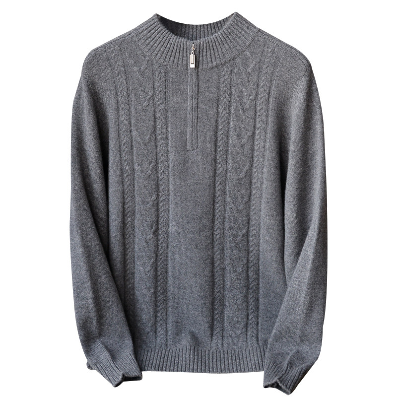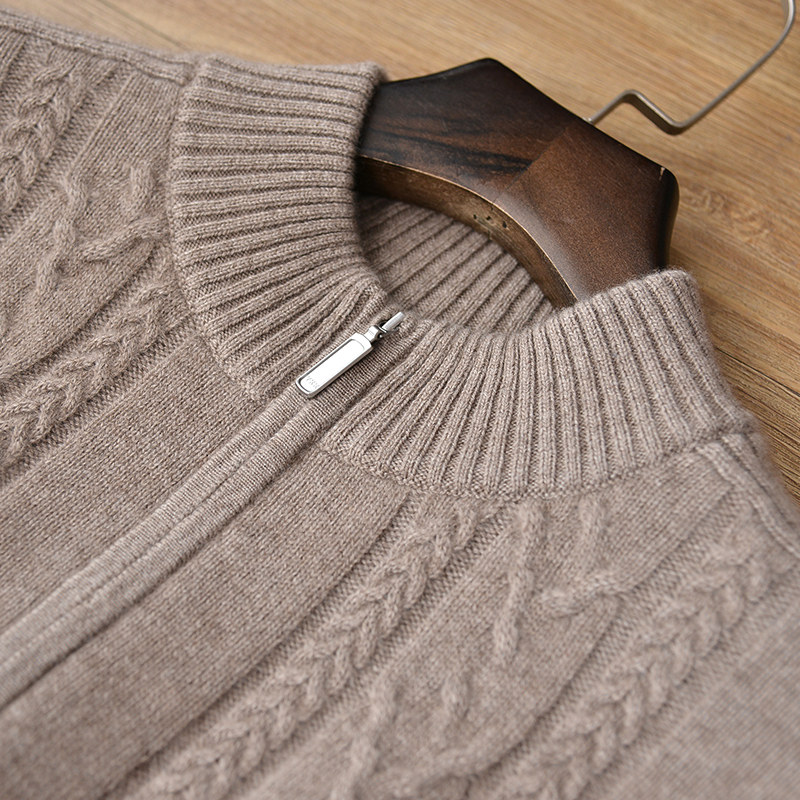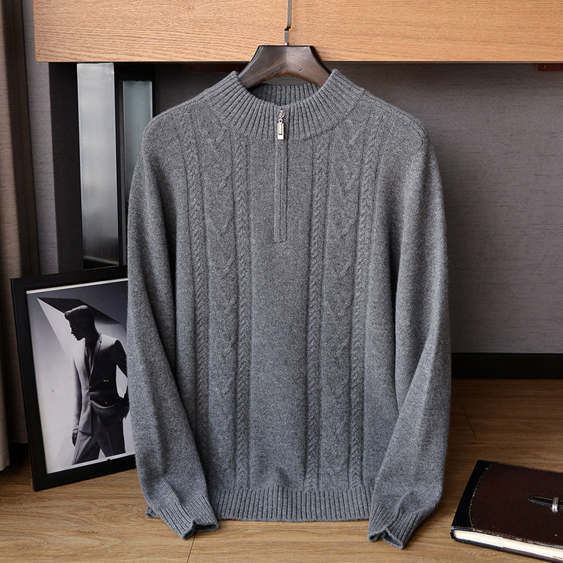 2022 Autumn and Winter New Semi - high Cashmere Sweater Men and Half - Lead Zipper Knitted Sweater 100 % Gold Velvet