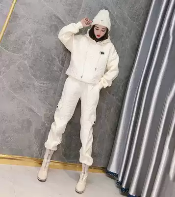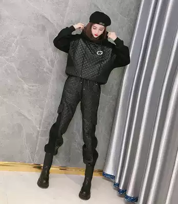 Hooded leisure sports set women winter 2021 New down cotton stitching plus velvet two-piece European tide