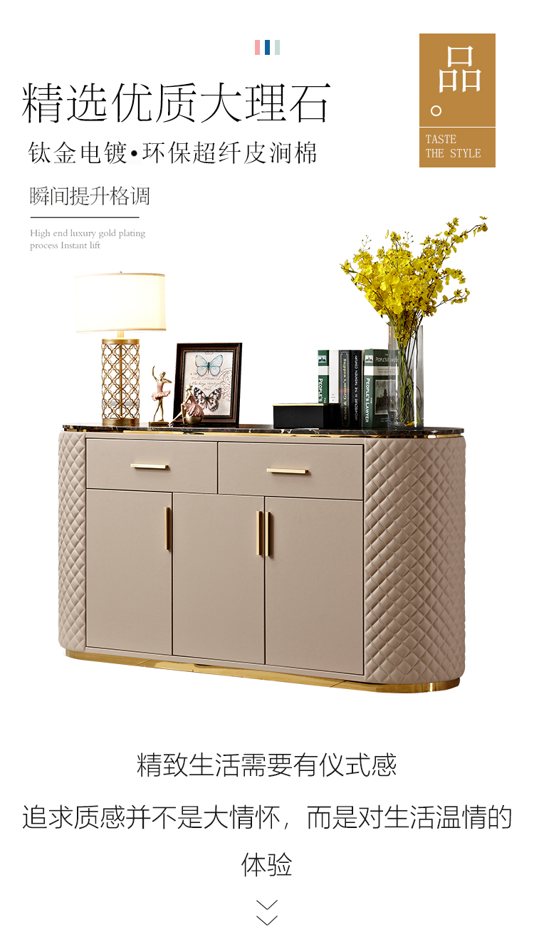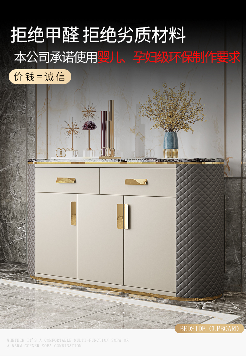 Solid wooden cabinet marble light luxury wind living room lounge cabinet modern minimalist port cabinet entry decoration cabinet