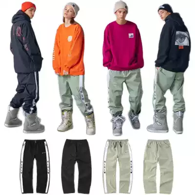 2021HOLIDAY Korean ski pants men's and women's single double board waterproof straight tube loose feet loose leg pants