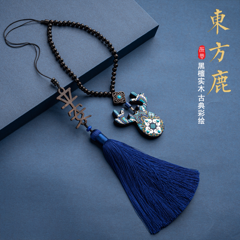 Double - sided painting Oriental deer, Ti - Jinlian bell, Double - sided color Oriental deer, Su - Lin, the back of the Oriental deer, the surface of the bell, the back of the bell engraved Oriental deer