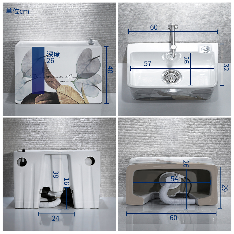 Nordic lengthened washing mop pool Home Balcony Makeup room Mop Pool Special Trough Pool 60CM Basin Mound