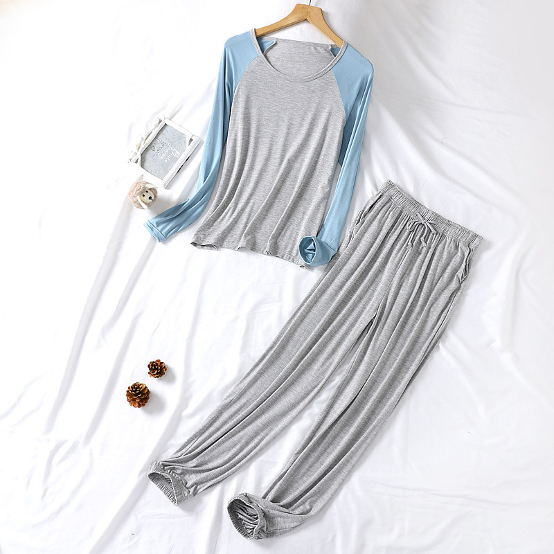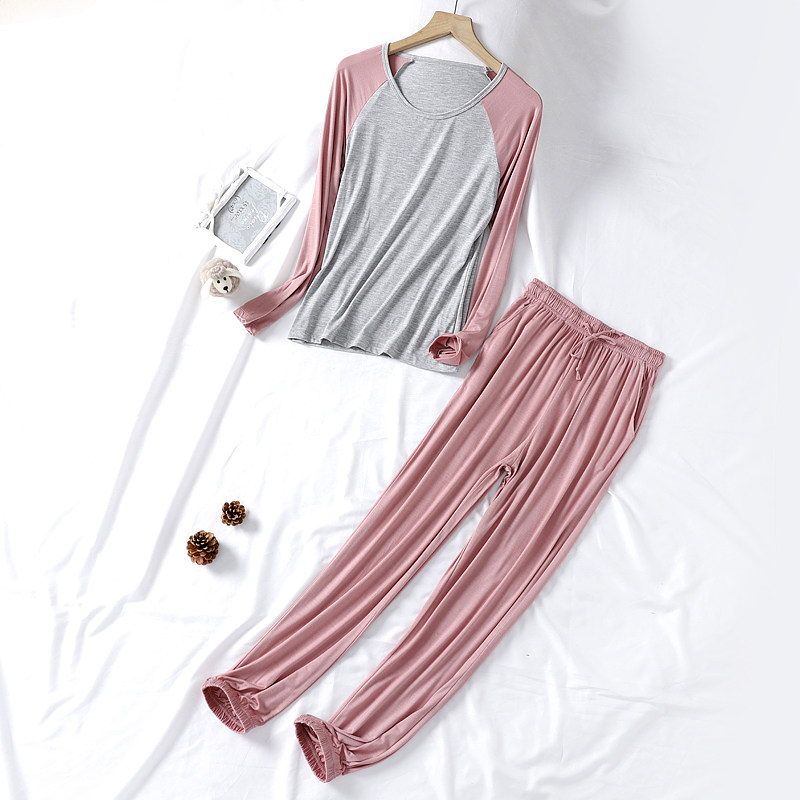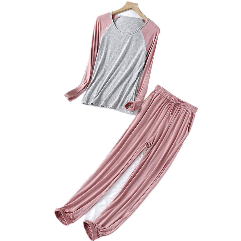 Lady Pyjamas 2022 Spring Summer New Modale Collision Color Day Ensemble Large Size Loose Slim length sleeves Home Suit Summer