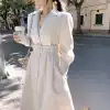 ByYou autumn and winter twill wool waist white wool coat women's long version thickened skirt coat
