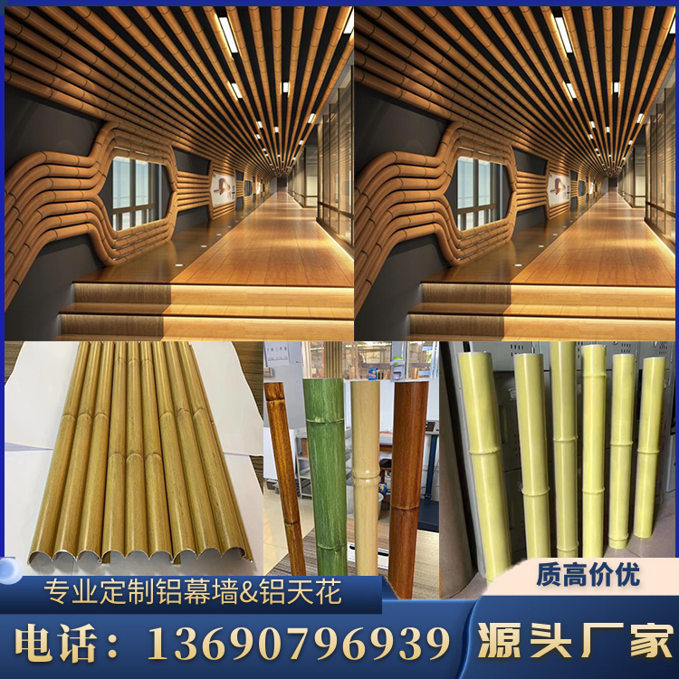 Imitation wood grain aluminum extrusion material bamboo section aluminum round tube groove u-shaped aluminum square pass curtain wall ceiling ceiling partition door head customization
