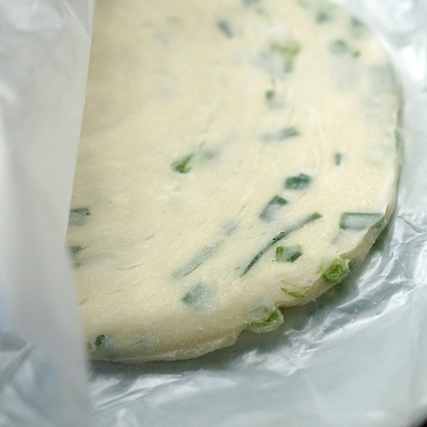 Wheat flour water soybean oil (non-GMO) chives refined lard butter white sugar table salt