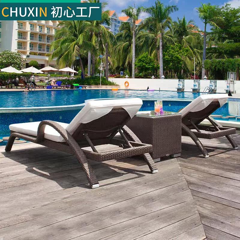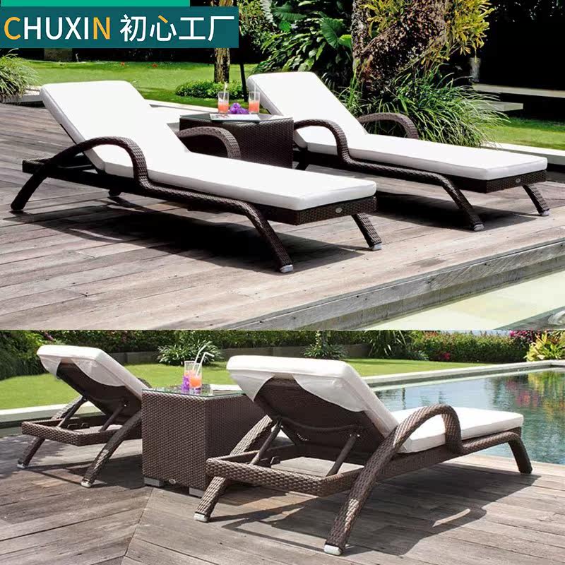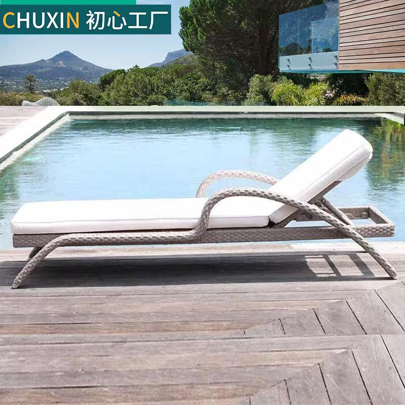 Outdoor Lying Bed Balcony Casual Rattan Chair Outdoor Patio Deck Chair Villa swimming pool Lying Bed Folding Rattan beach chair