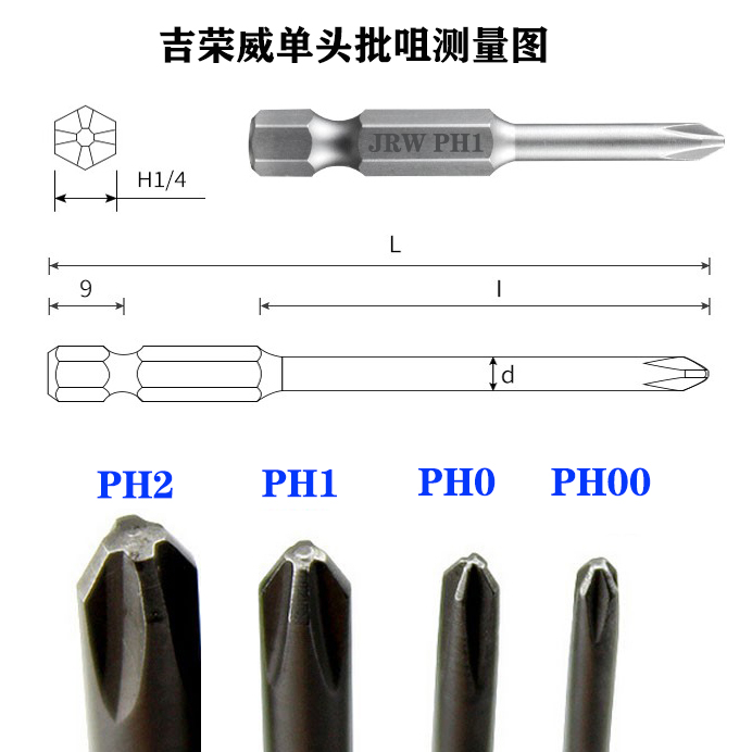 Girong Weiwei single head cross pneumatic screwdriver head 6 35 pneumatic screwdriver batch nozzle S2 alloy steel electric drill driver head PH2