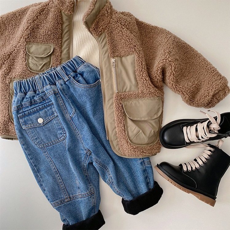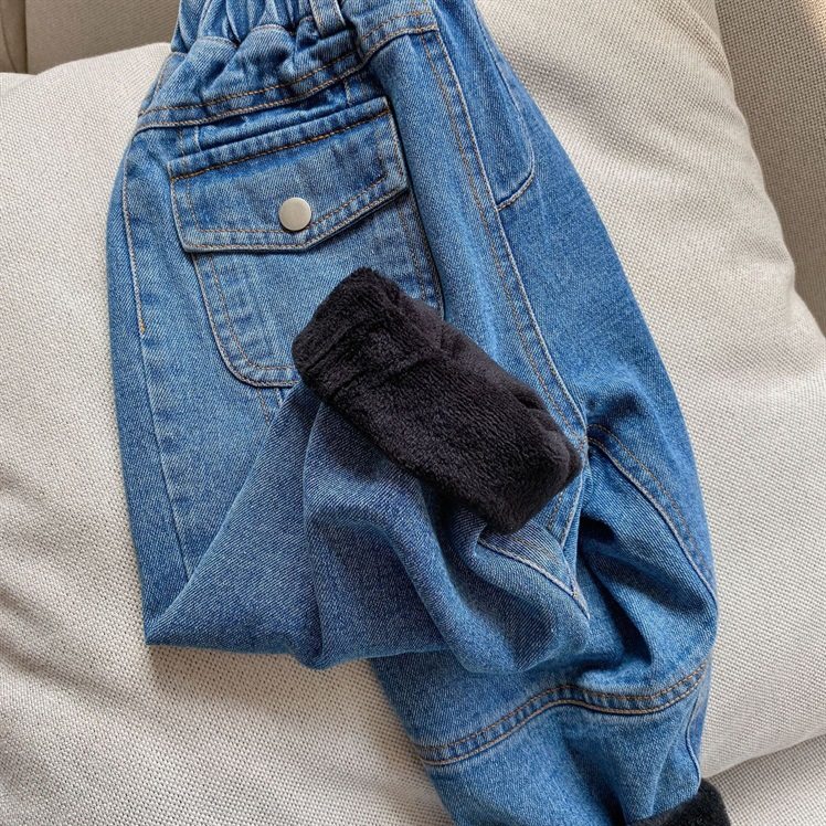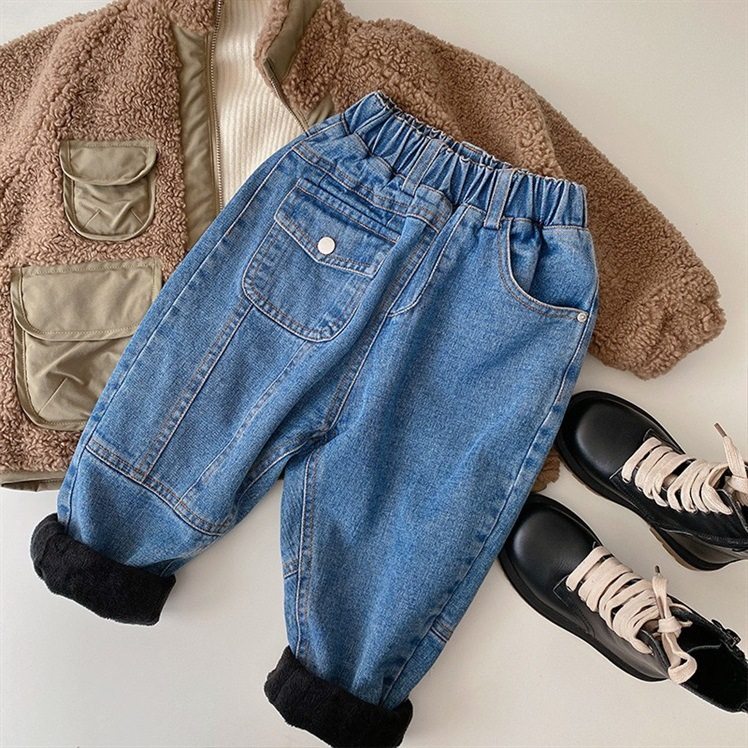 Children's thickened plush jeans boys and girls big pp pants long pants foreign casual loose Harun pants jacket cotton