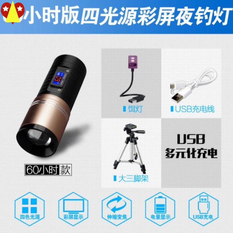 Night fishing light intense light fishing light Purple Light Bench Fishing Light Fish Lamp High Power Pull Bait Charging Blue Light Flashlight Luminous