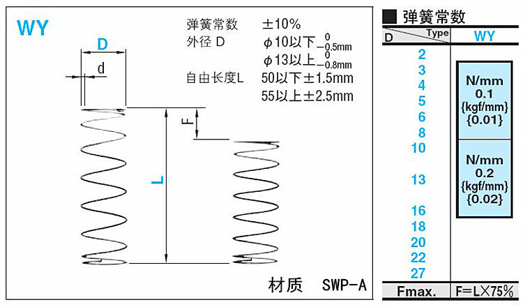 Customized instead of MISUMI round wire coil spring WY 6 8 10 MISUMI compression spring SWP-A
