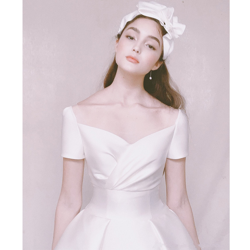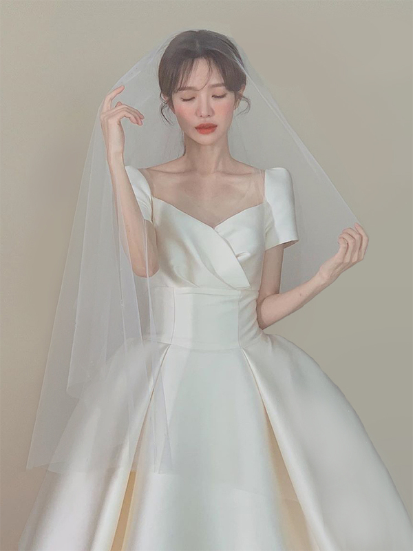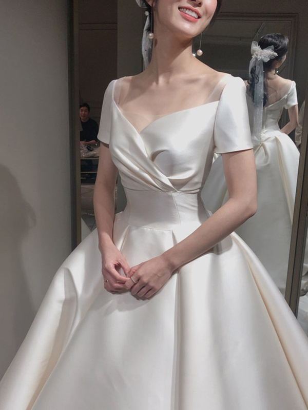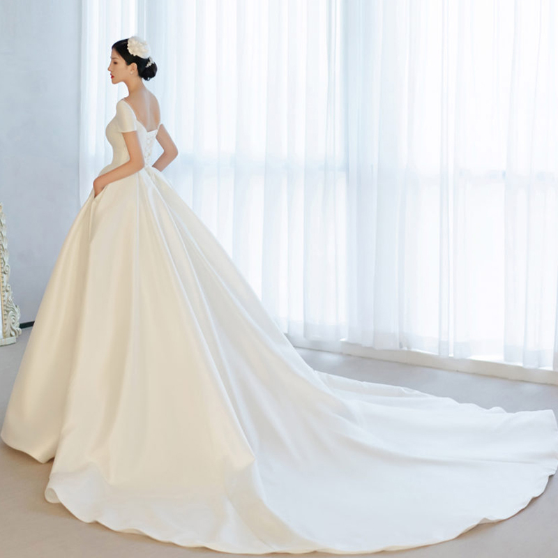 Satin main wedding dress 2021 New temperament bridal mortal simple atmosphere Super fairy French dream little tailed