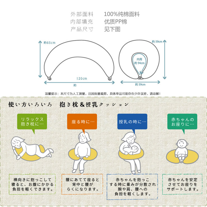 Pure Cotton Lactation Pillow Moon Type Sleeping With Pillow Large Strip Pillow Pregnant Woman Child Care Pillow Can Be Detached Wash With Coat