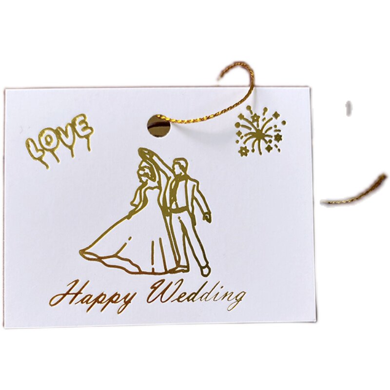 New wedding Happy Happy Wedding small hanging card perforated without punching 6 * 8cm bronzed wedding cake card