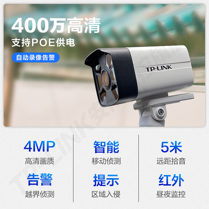 TPLINK security 4 million HD wired surveillance camera POE network cable power supply outdoor mobile phone remote outdoor gun ir night vision remote pickup waterproof dustproof probe video head