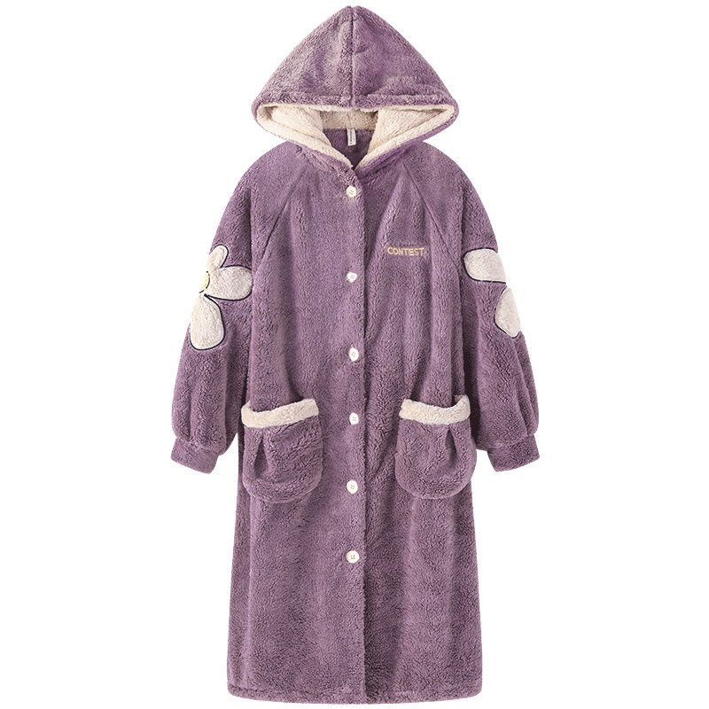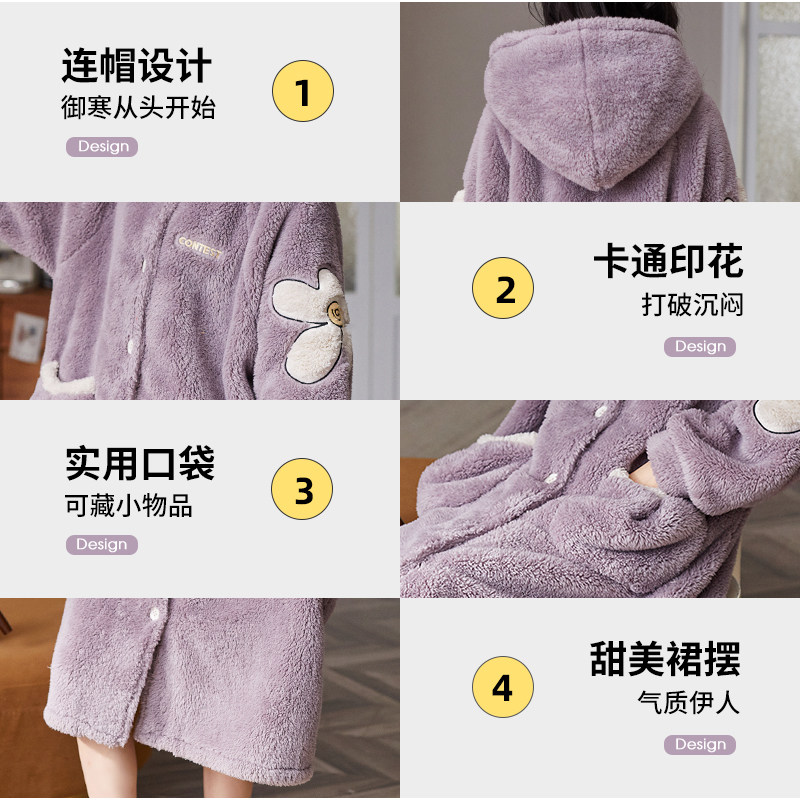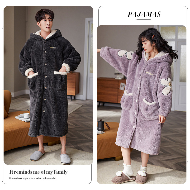 Couple autumn winter dressing gown female long edition thickened warm and cute cap flannel men can wear winter pajamas