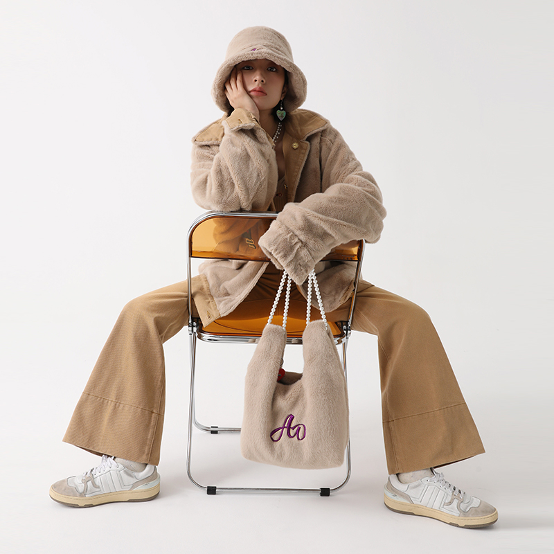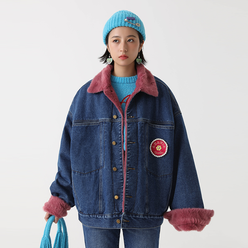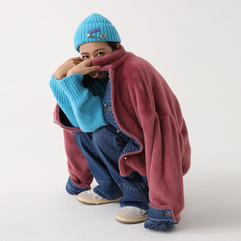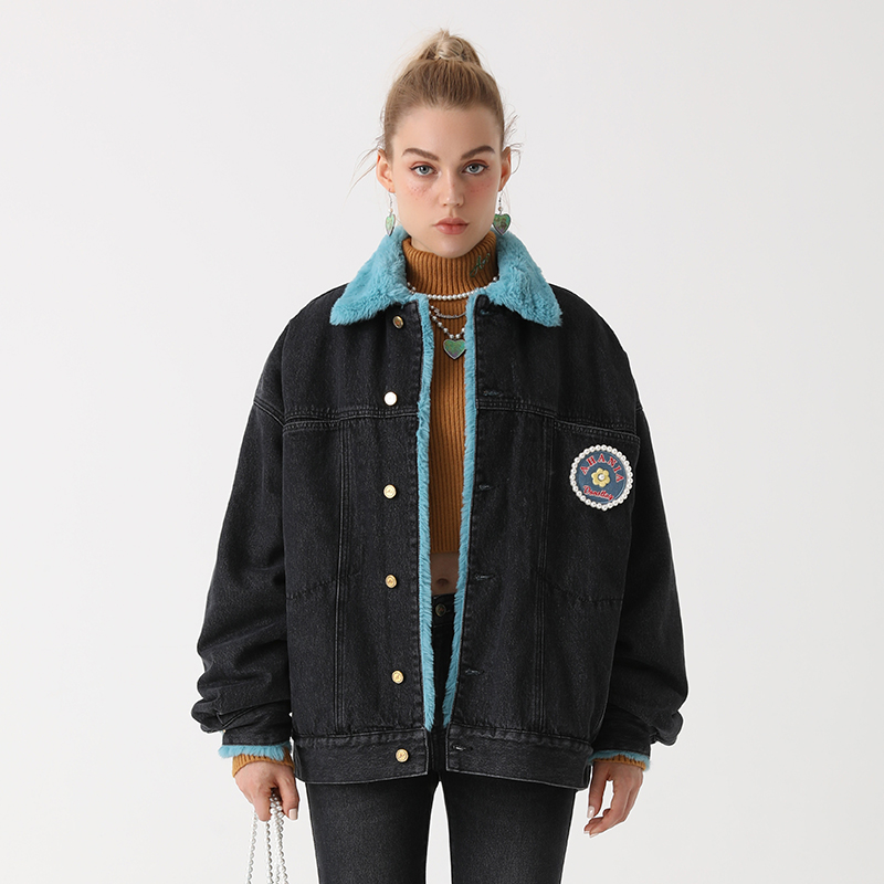Ahania X DNT Han Huohuo gives warmth and full horsepower to wear imitation rabbit plush denim jacket