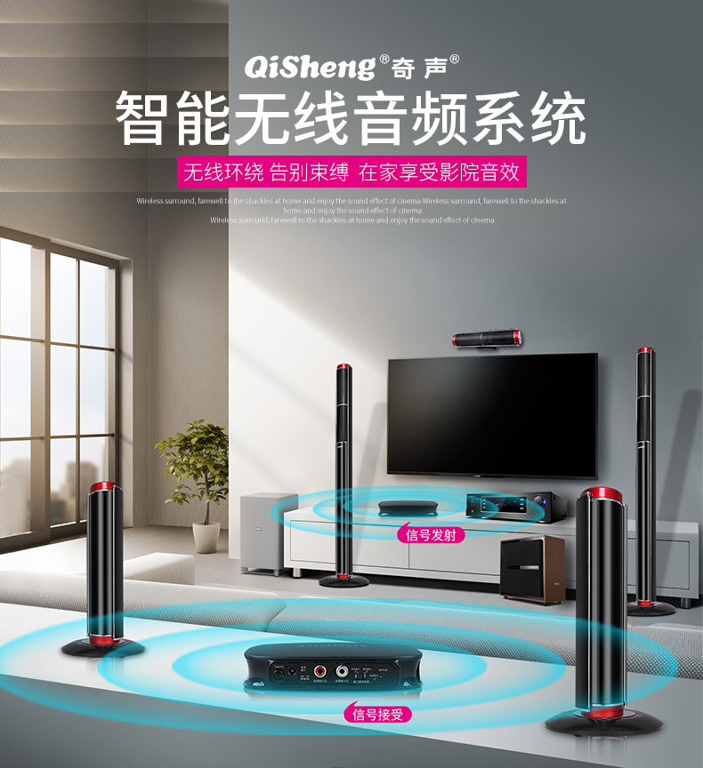 Chic High Fidelity Wireless Surround Home Cinema 5 1 Acoustics Connected Speaker Low Sound Cannon Transmitter Receiver-Taobao