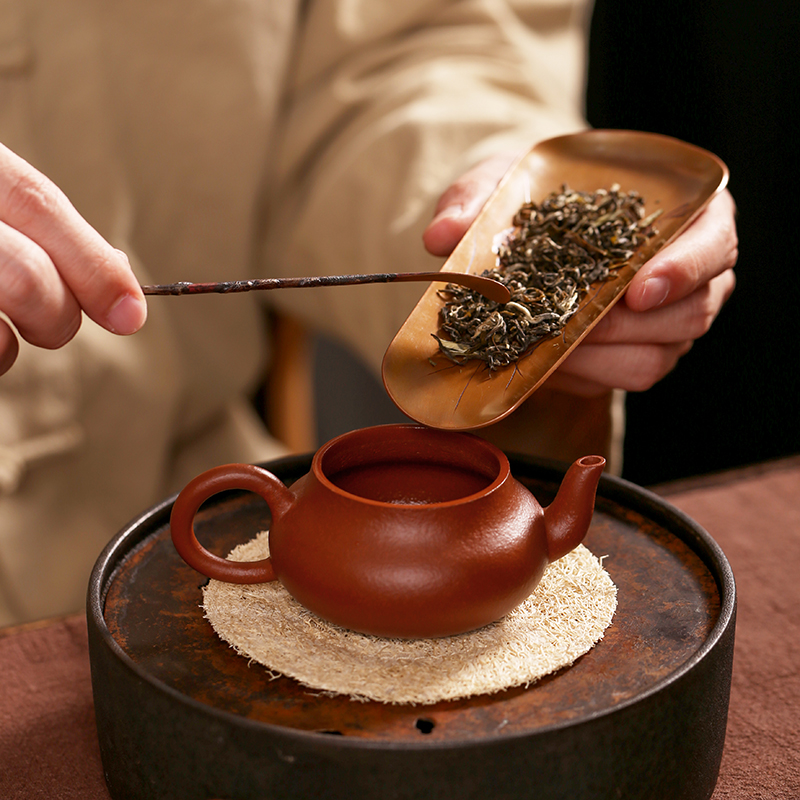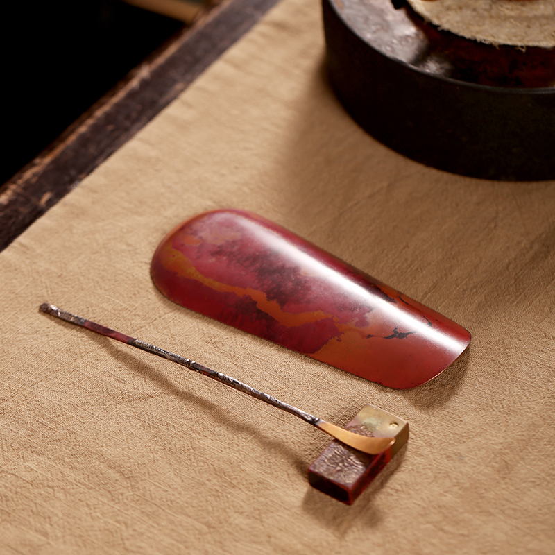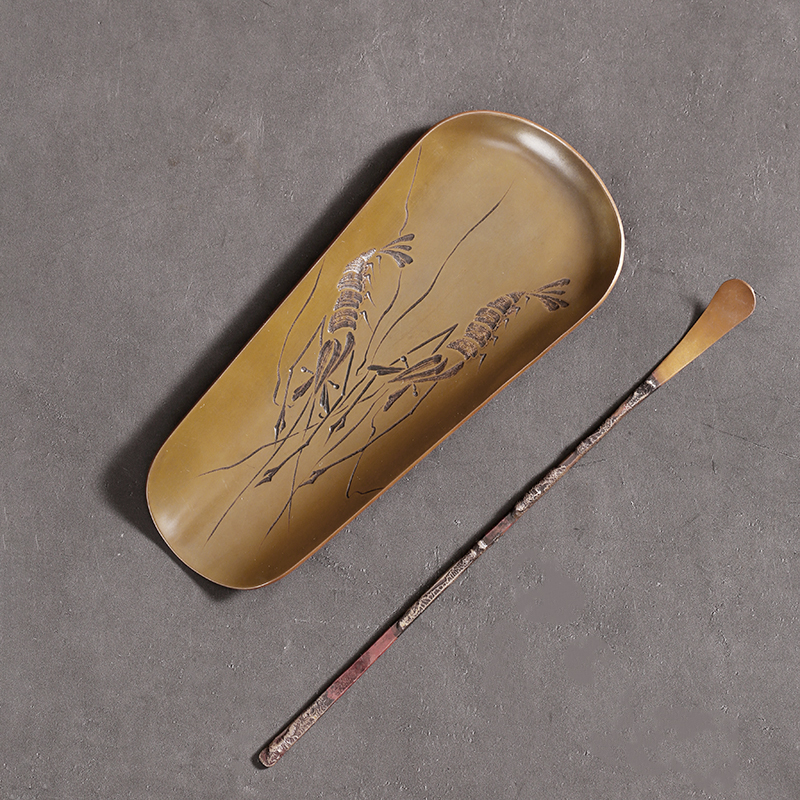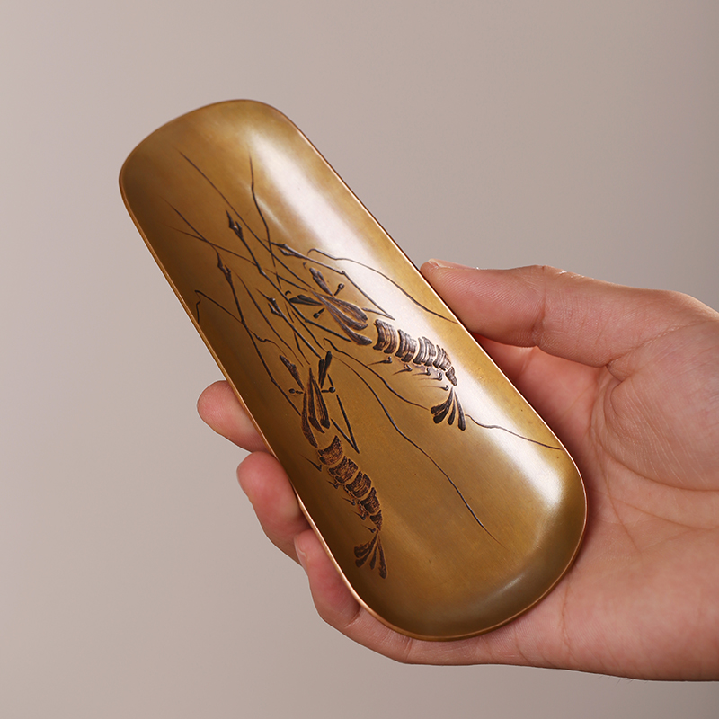 Hand carved copper tea lotus tea lotus two-piece set Lobster pattern Zen tea shovel Tea spoon Kung Fu Tea Road accessories