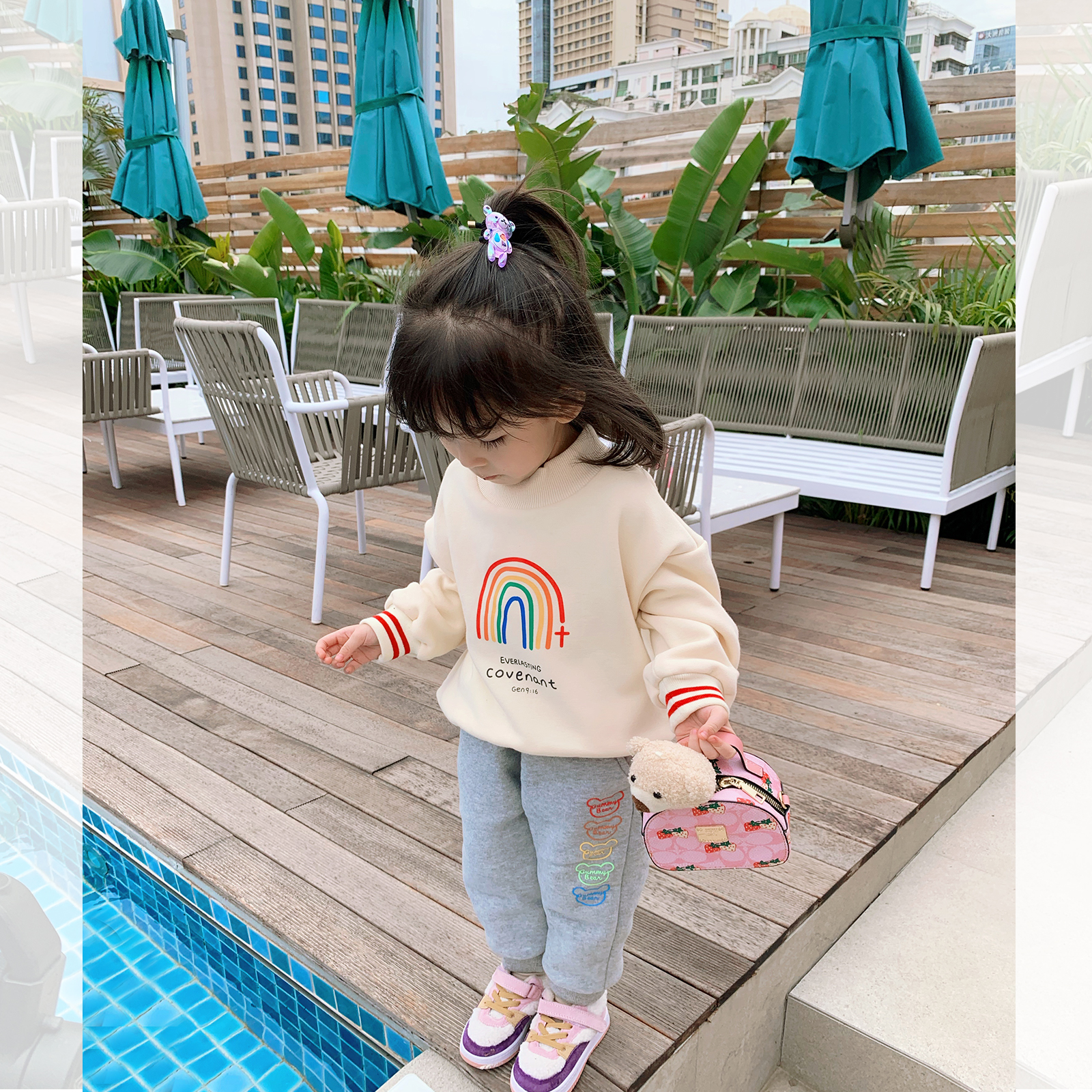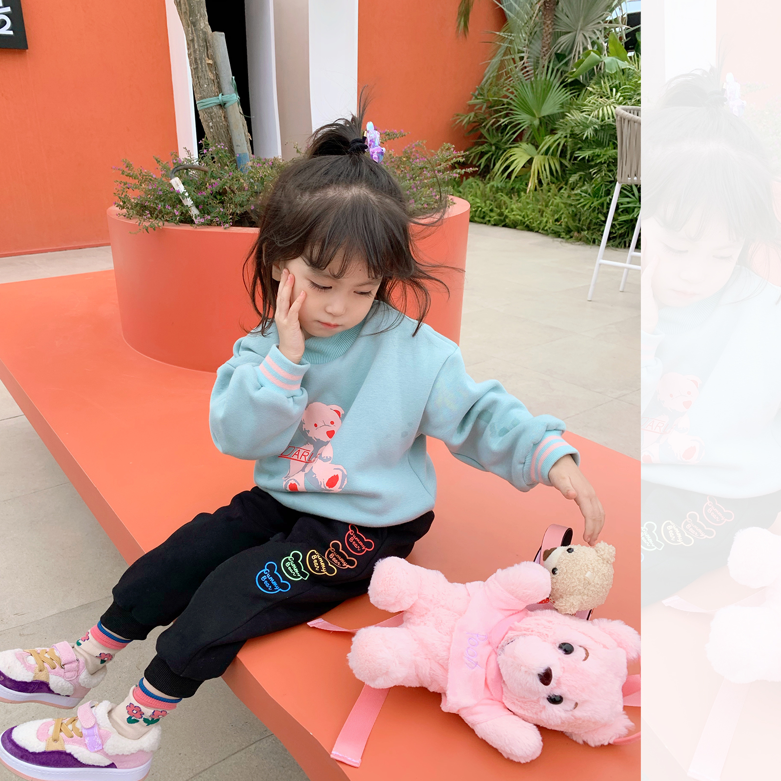 Hong Kong Pretty Girls Kindergarten Sports Pants Baby Winter Wear Children Plus Plush ThickEnEd Cotton Casual Pants