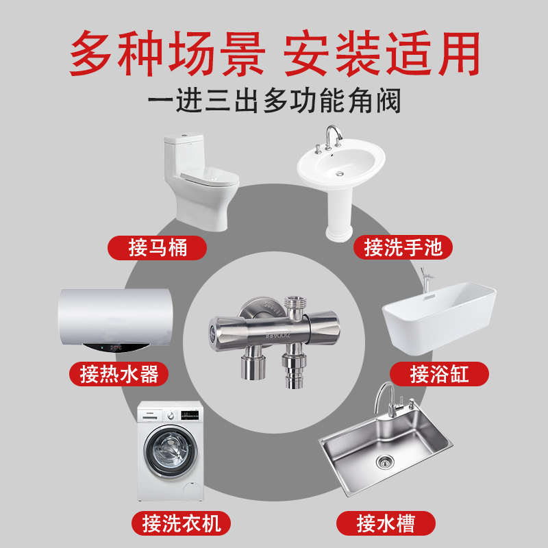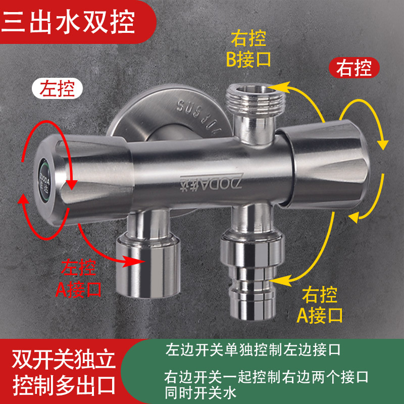One-in-three-out angle valve toilet 10%-three multifunction double cut tee triangular valve water splitting valve with spray gun tap