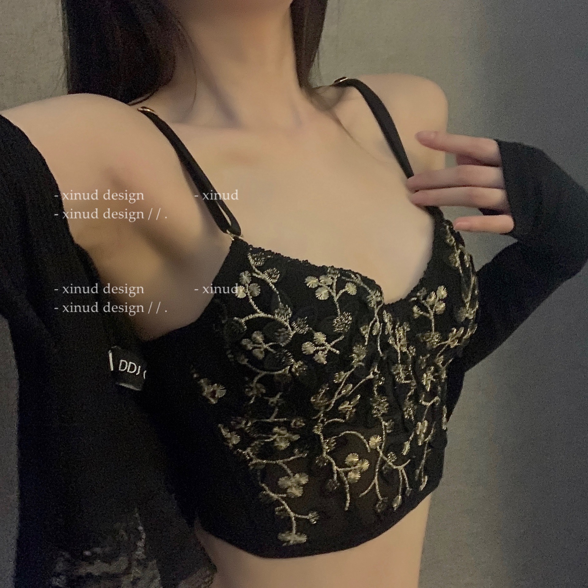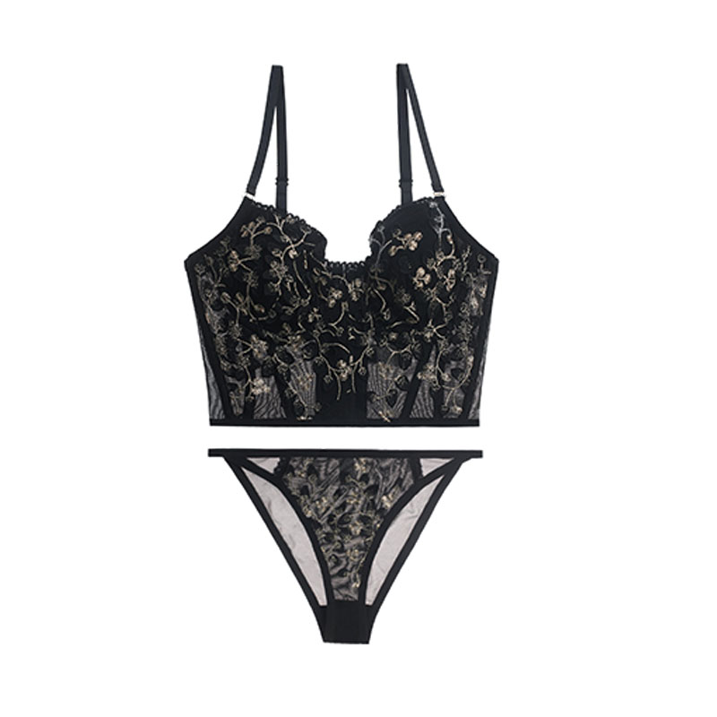 "LA" BLACK* floral art French set lace lingerie girly panties corset bra suspender