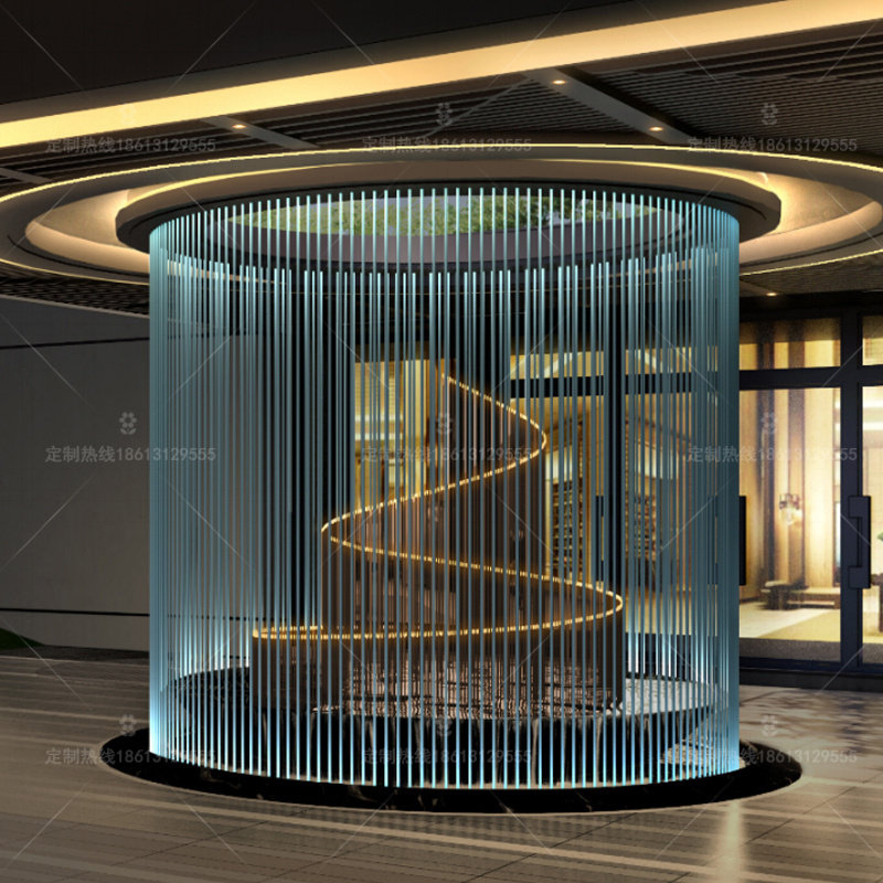 Large Circular Pull Wire Water Curtain Wire Flowing Water Landscape Fountain Courtyard Fiber Light Pull Wire Water Curtain Stainless Steel Pendulum