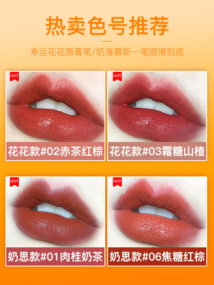 Emerald green orange red rose red pink red lotus root color watermelon red wine red NO 02 red tea red brown below cream mousse lipstick pen~~~NO 1 cinnamon milk tea plain face NO