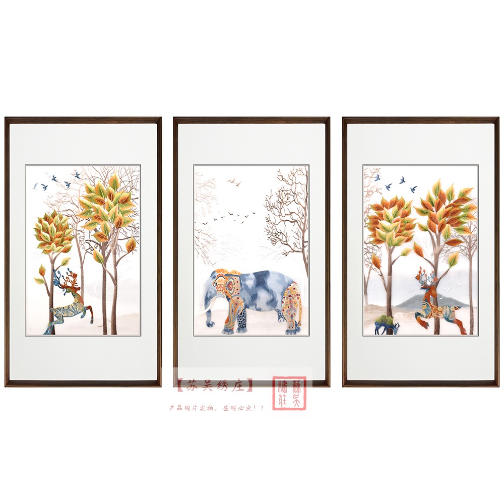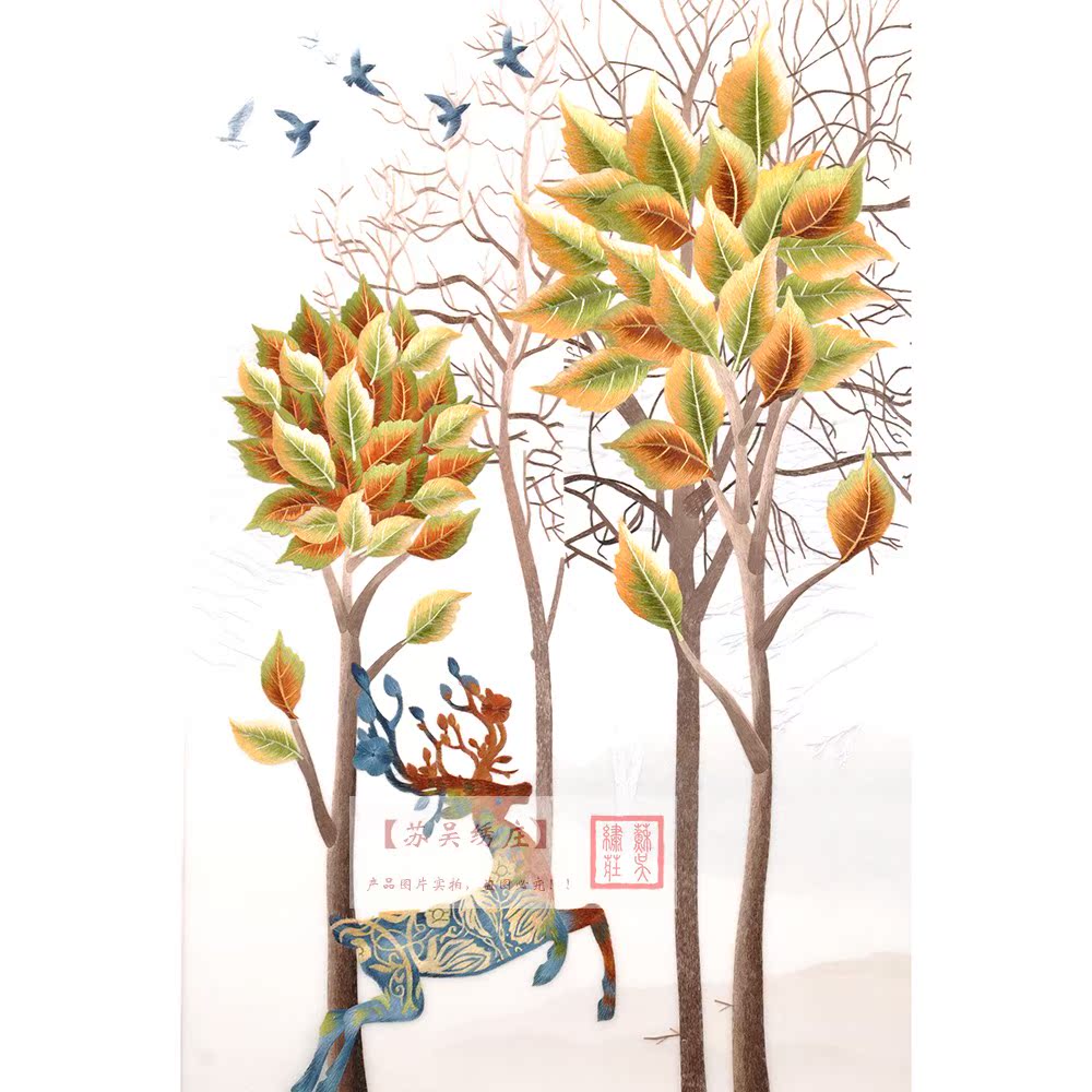 Hand-embroidered Suzhou embroidery finished product hanging painter's living room modern minimalist style auspicious deer (auspicious all the way)