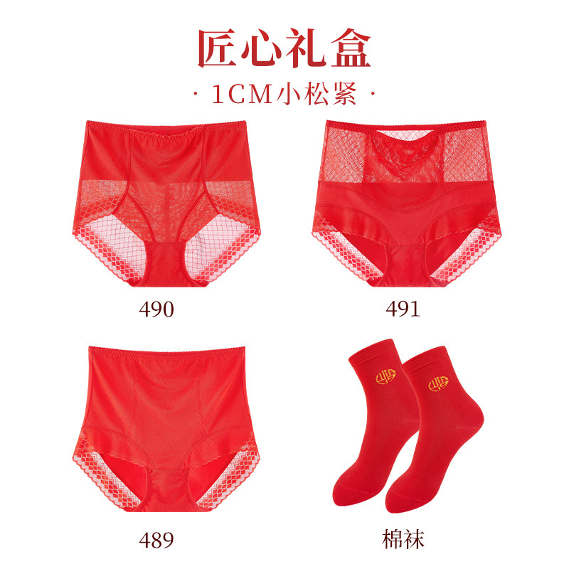 Antarctic man's Year of life underwear women's red women's underwear Year of the Ox high waist belly sexy cotton antibacterial crotch lace