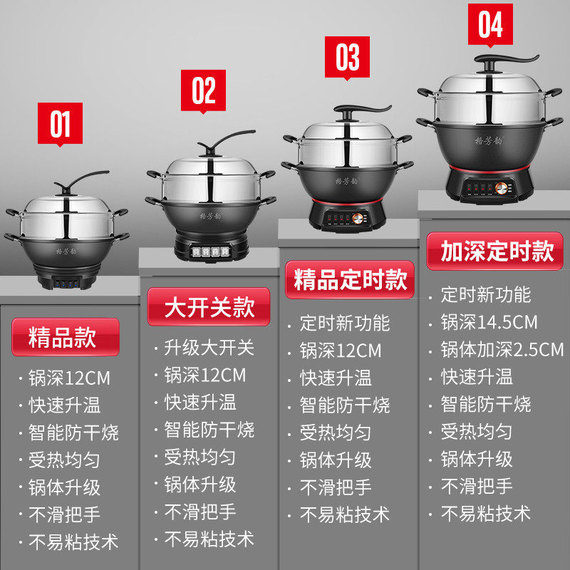 Cast iron electric wok Multifunctional cooking pot Household cooking pot Integrated plug-in wok electric hot pot electric steamer